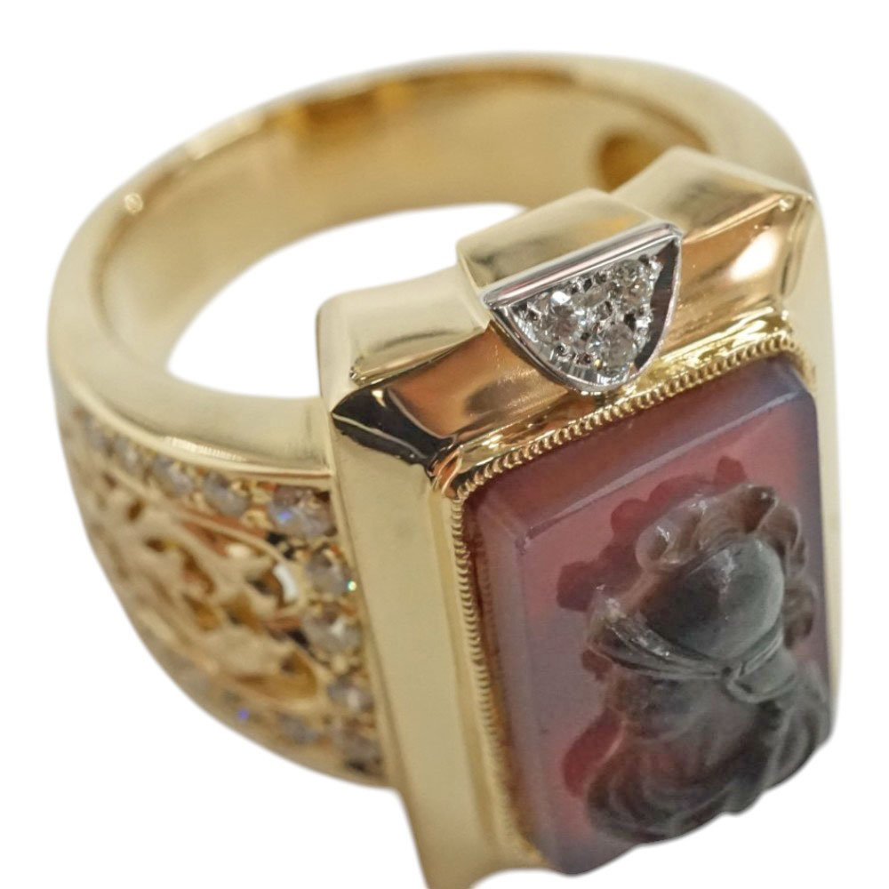 カメオが付いたオシャレなリングです。 2色の地金を使用しているので、お手持ちのジュエリーにも合わせやすいです。 この機会に是非いかがでしょうか。