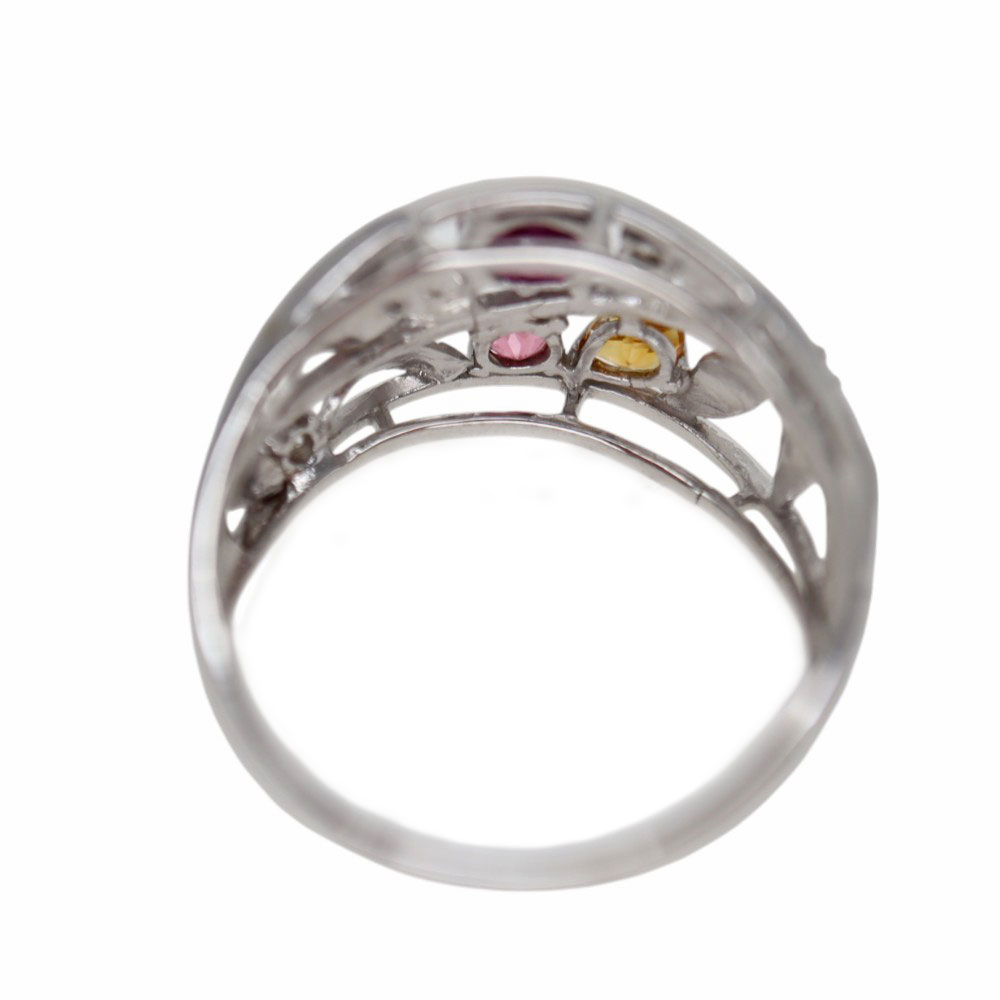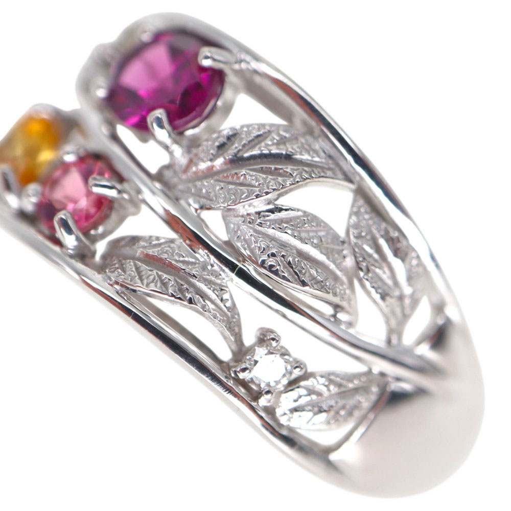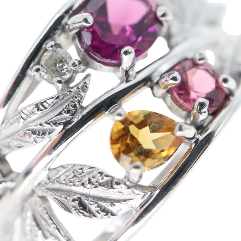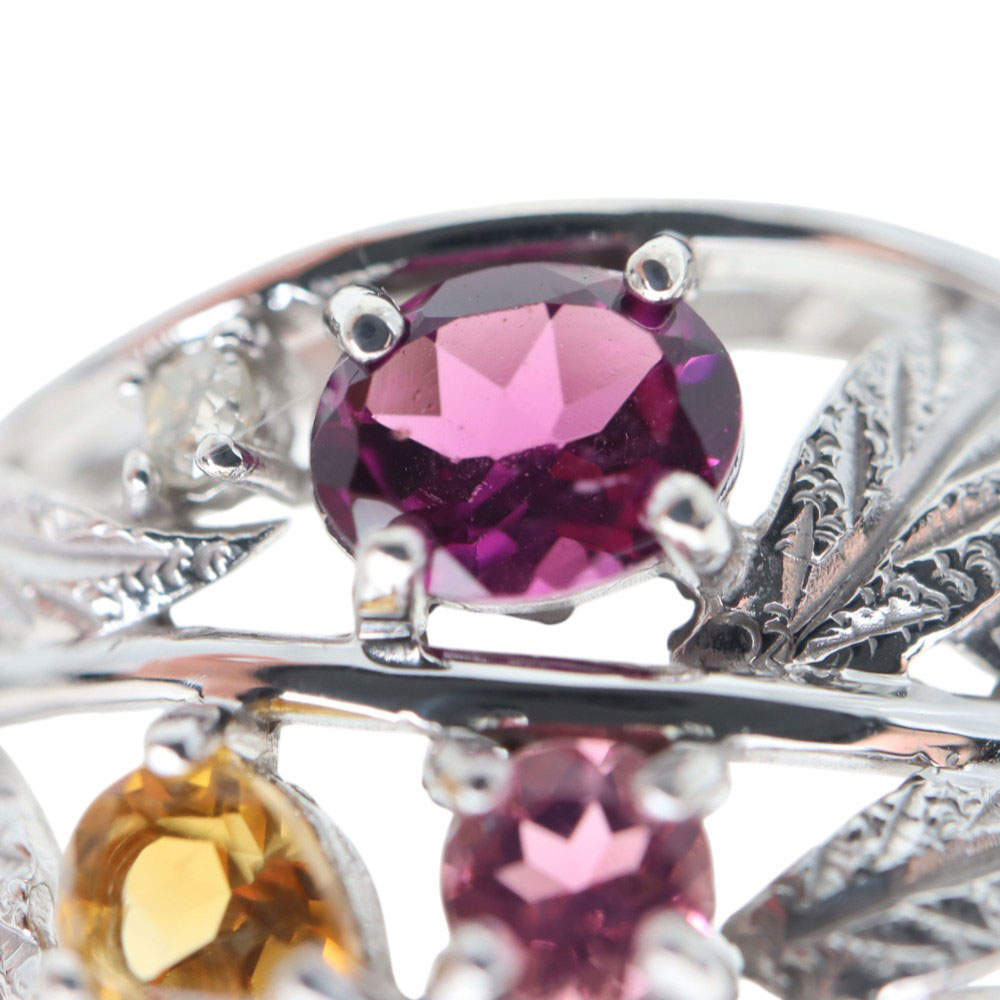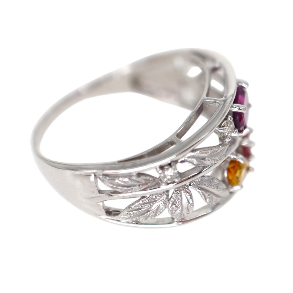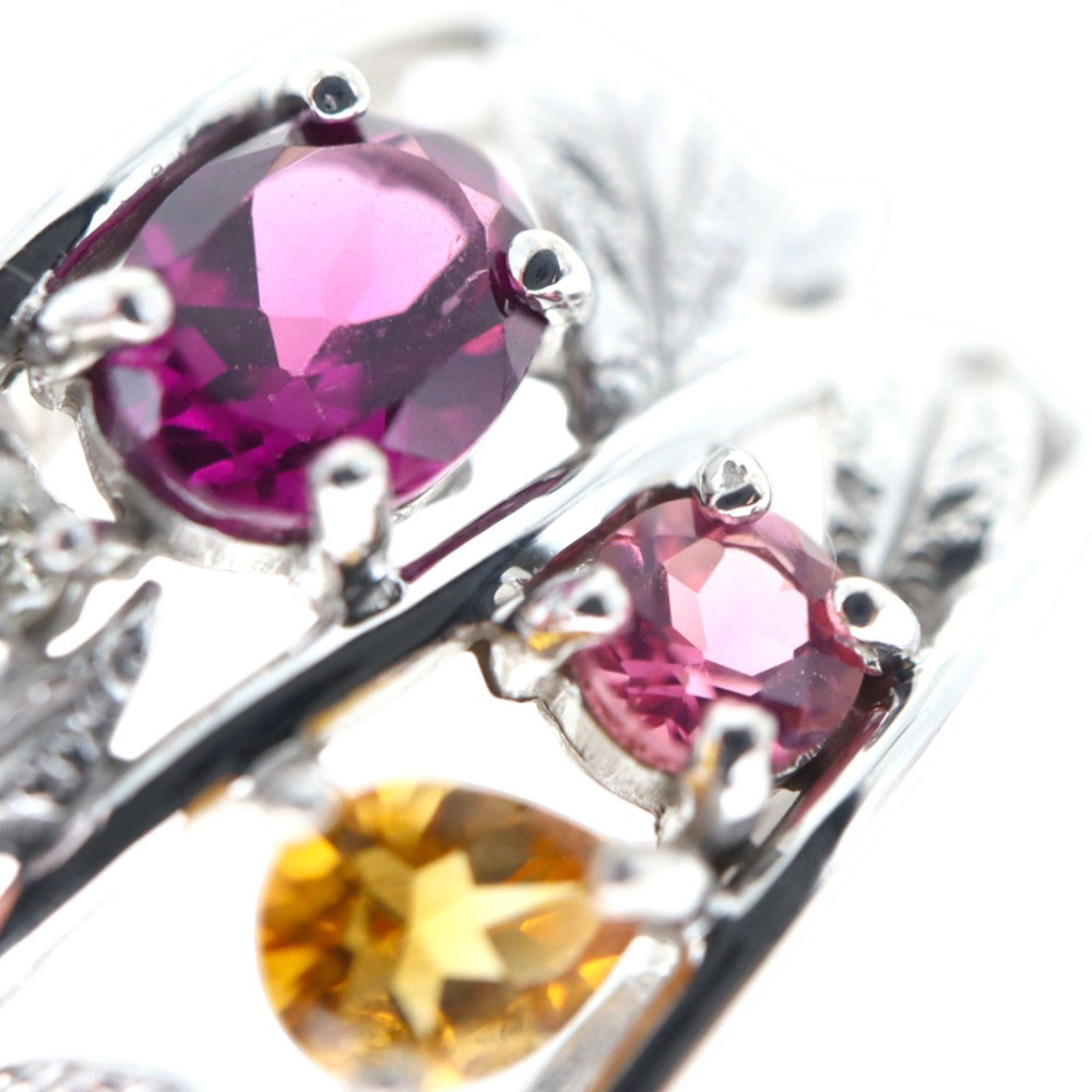 ラグジュアリーな幅が広いボリューム感あるリングです。 繊細な葉っぱのデザインが上品で、カラフルなガーネットが可愛らしい印象を与えます。