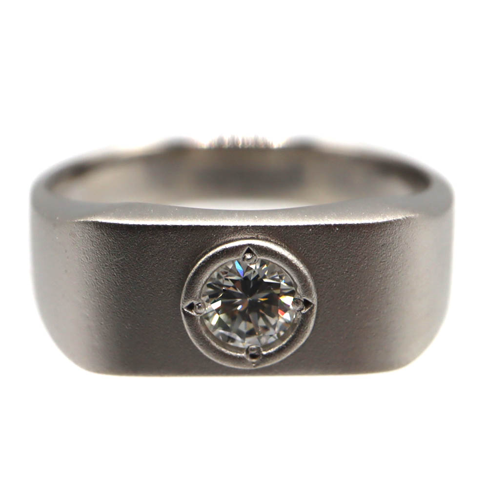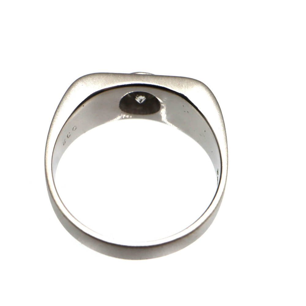 リングには合計0.32ctのダイヤモンドをあしらい、さりげない輝きと重厚感のあるデザインが指元に上品な存在感を与えます。