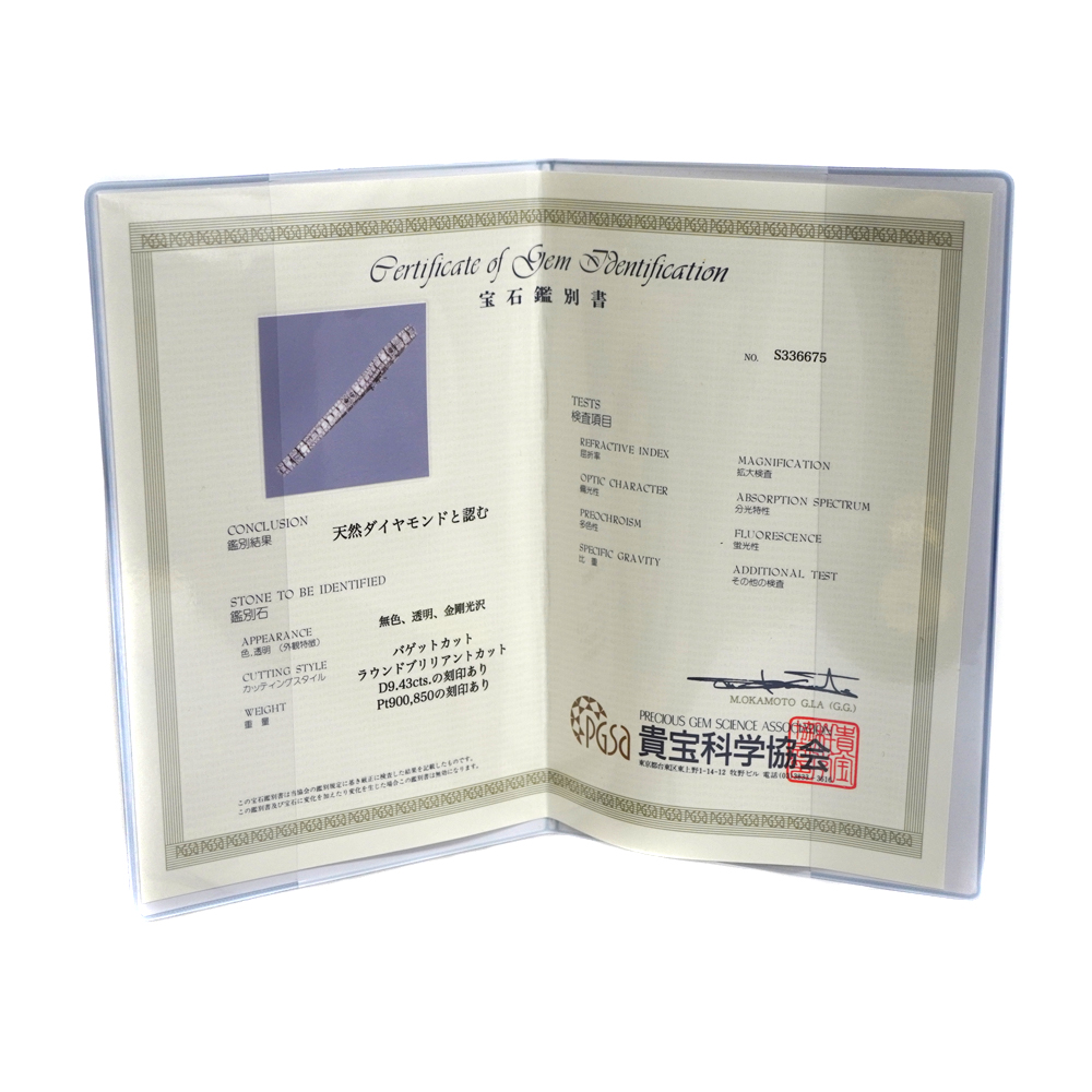 | 素材 | Pt900(プラチナ900) 留め具:Pt850(プラチナ850) ダイヤモンド9.43ct |