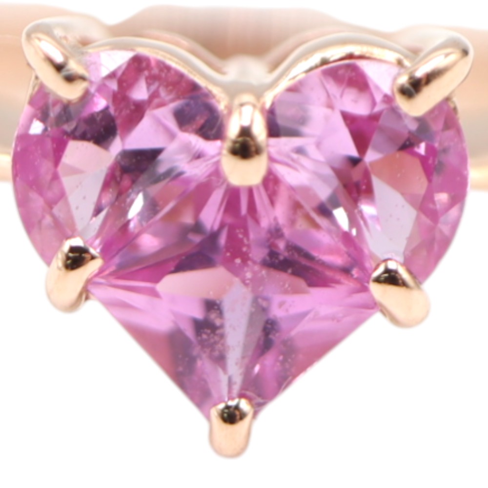 ハートシェイプにカットされたピンクサファイアが可愛らしいお品物です。 ガーリーなお洋服に合わせるのもおすすめです。
