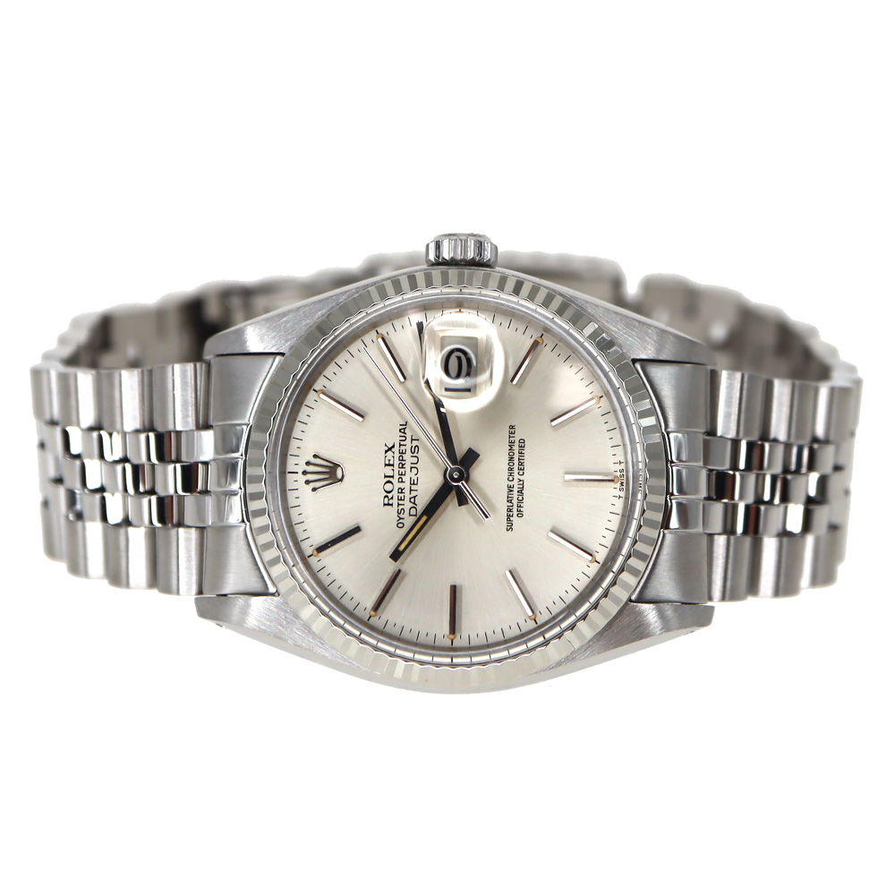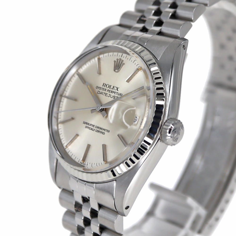 | 商品説明 | ROLEX【ロレックス】「デイトジャスト」のご紹介です。 ロレックスを代表するクラシックモデル「デイトジャスト 16014」。 ホワイトゴールド製フルーテッドベゼルとステンレススチールの組み合わせが、エレガントさと実用性を兼ね備えた一本です。 シンプルで視認性の高いダイヤルに、日付表示を備えた使い勝手の良い設計。 ヴィンテージならではの味わい深い雰囲気を楽しみつつ、オン・オフ問わず幅広いシーンで活躍します。 長く愛され続けるロレックスの定番モデルとして、初めての一本にもコレクションにもおすすめです。 この機会に是非いかがでしょうか。
