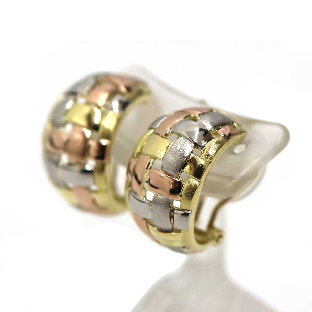 大きめで存在感のあるイヤリングとなります。 イエローゴールド×ピンクゴールド×シルバーのスリーカラーが特徴的で美しいデザインです。 この機会に是非いかがでしょうか。