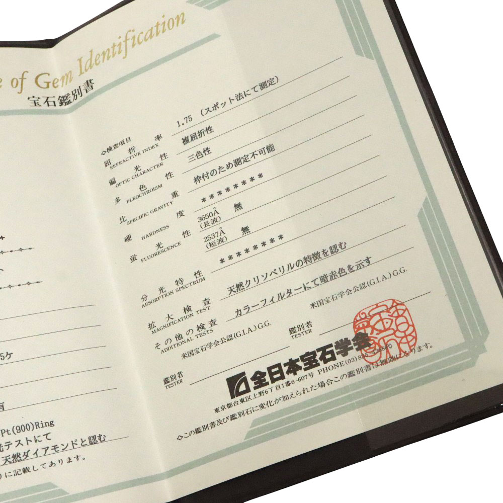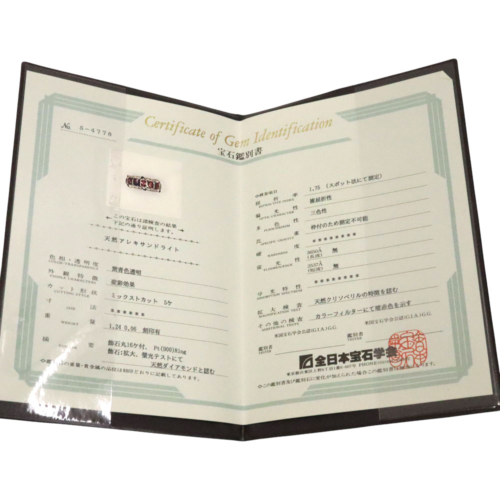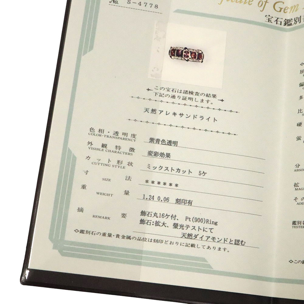 素材 | Pt900(プラチナ900) アレキサンドライト:1.24ct ダイヤモンド:0.06ct |