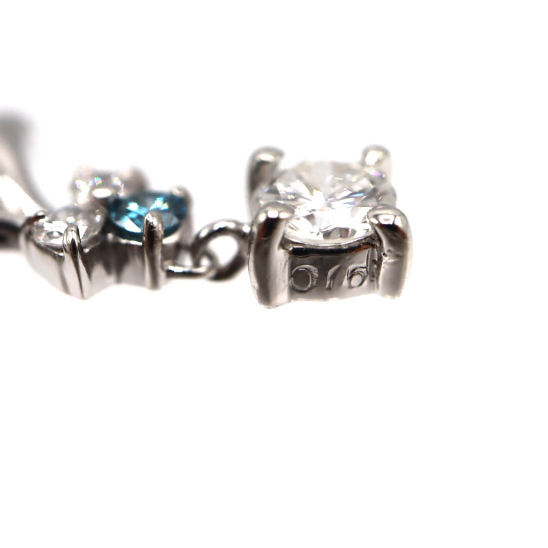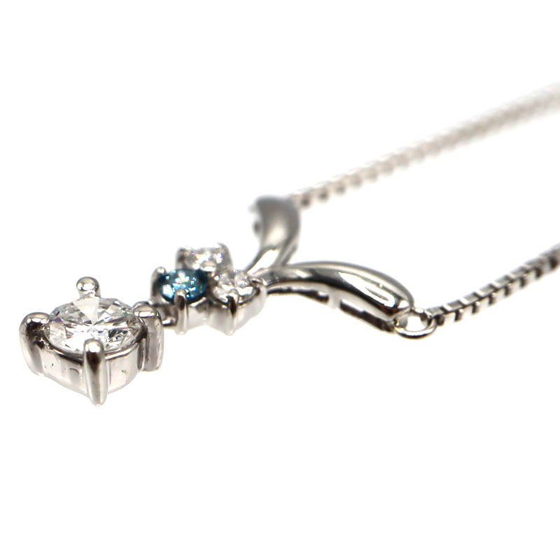 トップには合計0.16ctのダイヤモンドをあしらい、ブルーダイヤモンドならではの落ち着いた色合いと上品な輝きが胸元を美しく演出します。