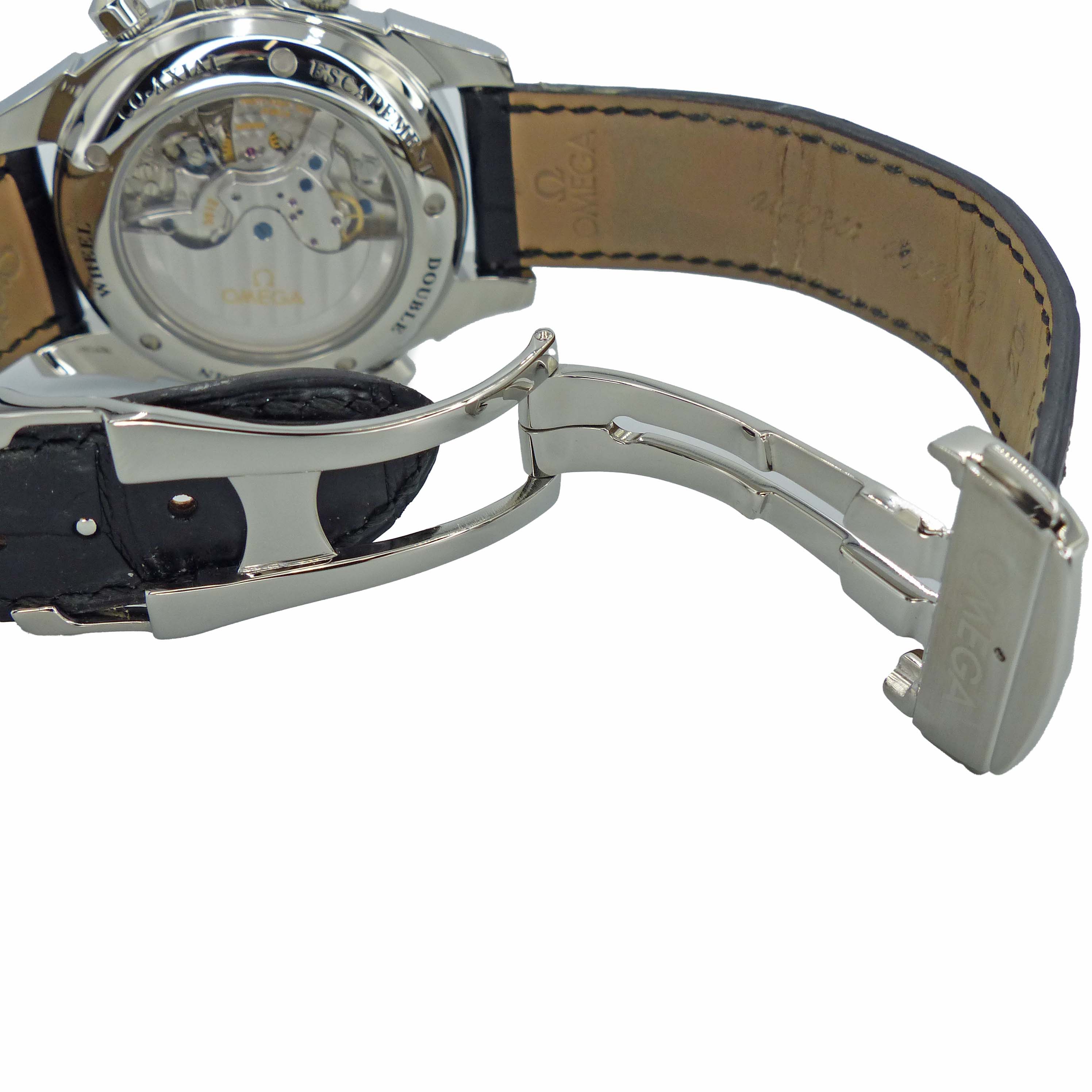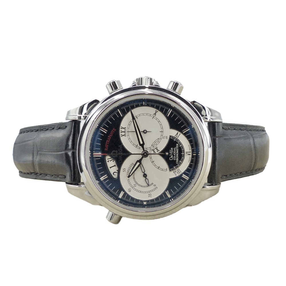 | 商品説明 | 個性とスポーティさを兼ね備えた一本。ブラックダイアルにシルバーの30分・12時間積算計とスモールセコンド、11時位置の日付表示を備え、スプリットセコンド針で経過時間を瞬時に把握できます。
