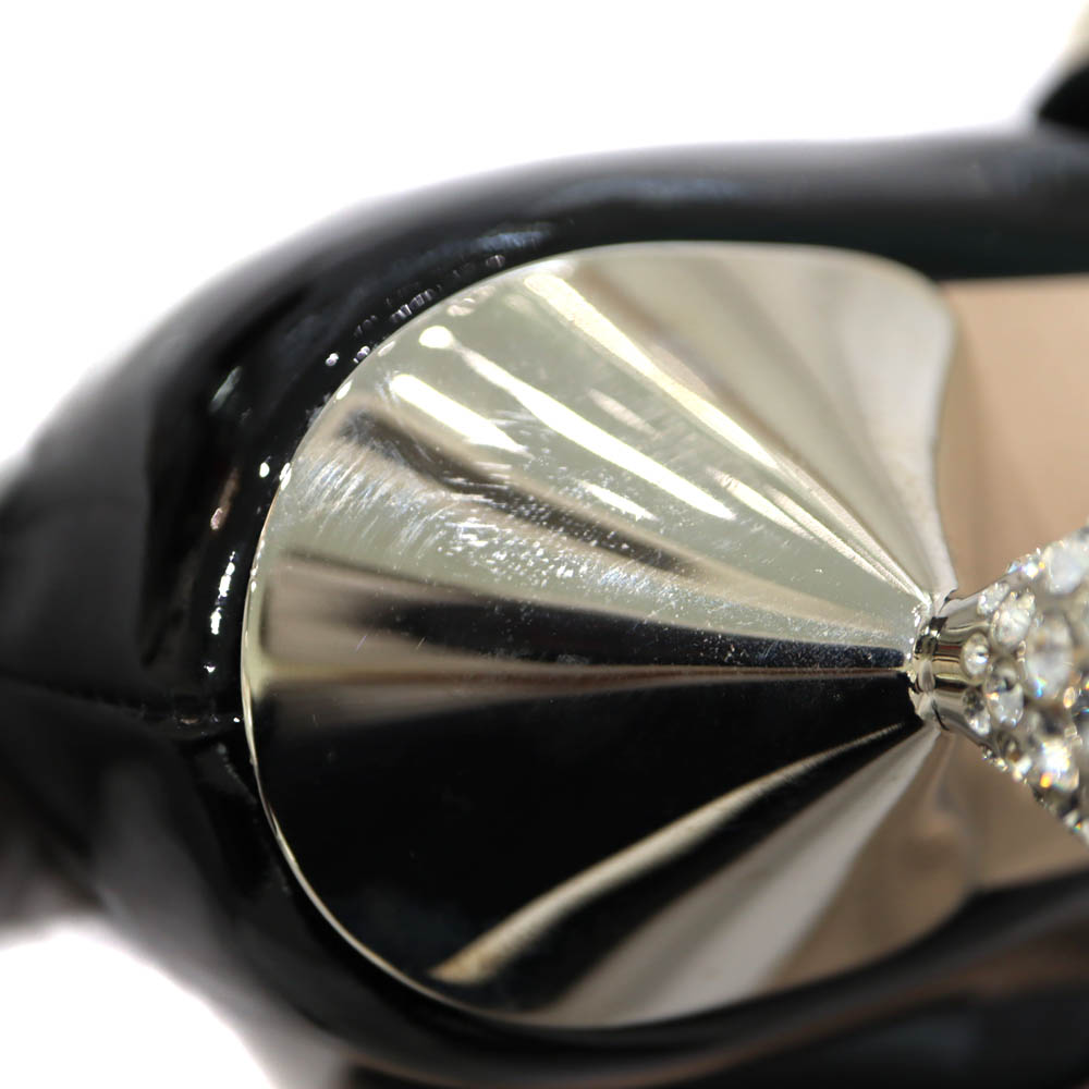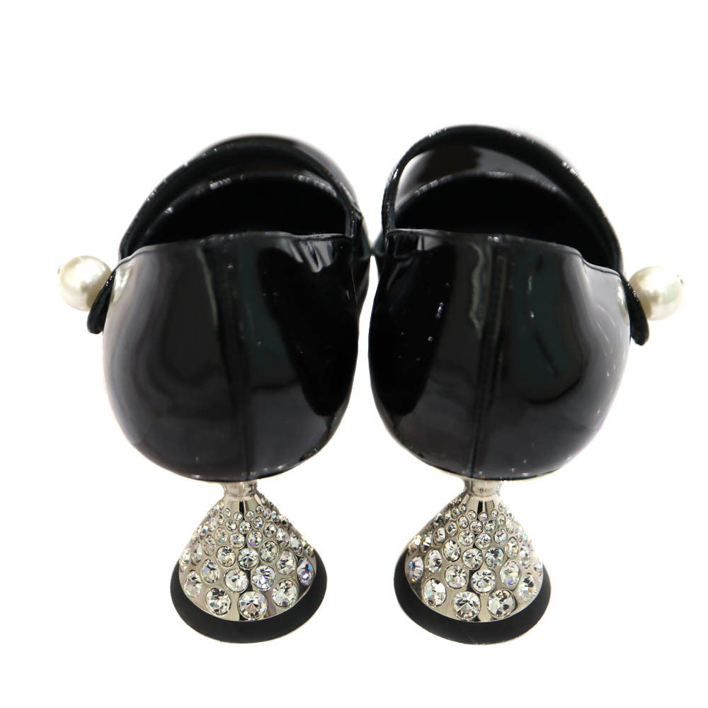 エナメルのボディにパール、ヒールにはラインストーンがあしらわれたゴージャスなデザインのパンプスです。 足元を華やかに演出し、パーティーシーンで活躍します。 この機会に是非いかがでしょうか。