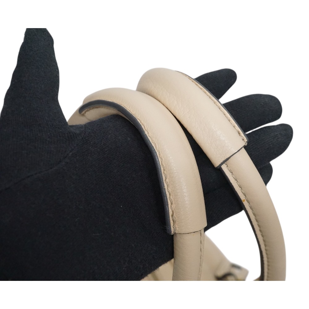 上品なクリーム色のバッグに大きなゴールド金具が施された豪華な印象のバッグです。 サイズ感も大きくどんな場面でも活躍間違いなしです。 お探しの方はこの機会にぜひいかがでしょうか。