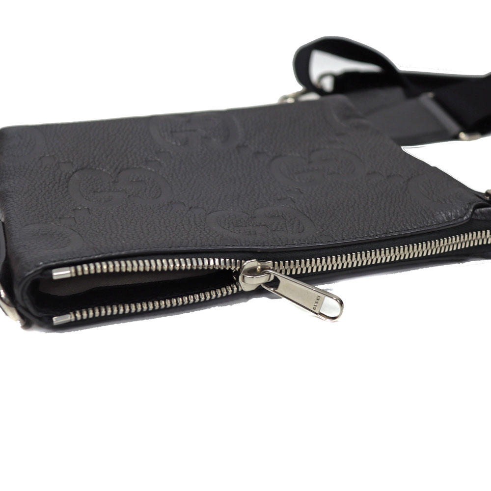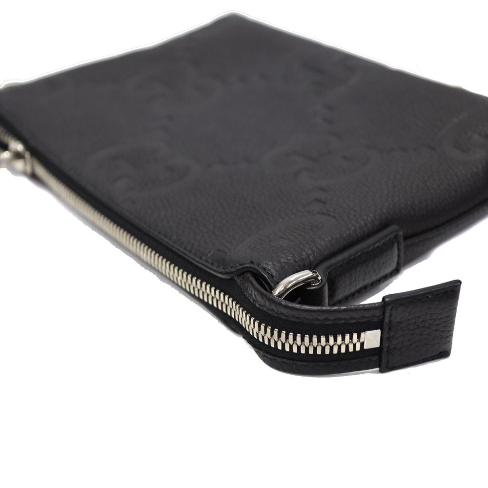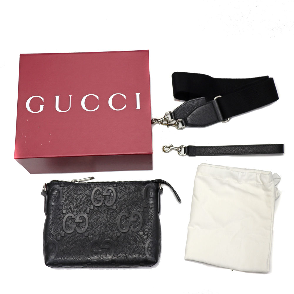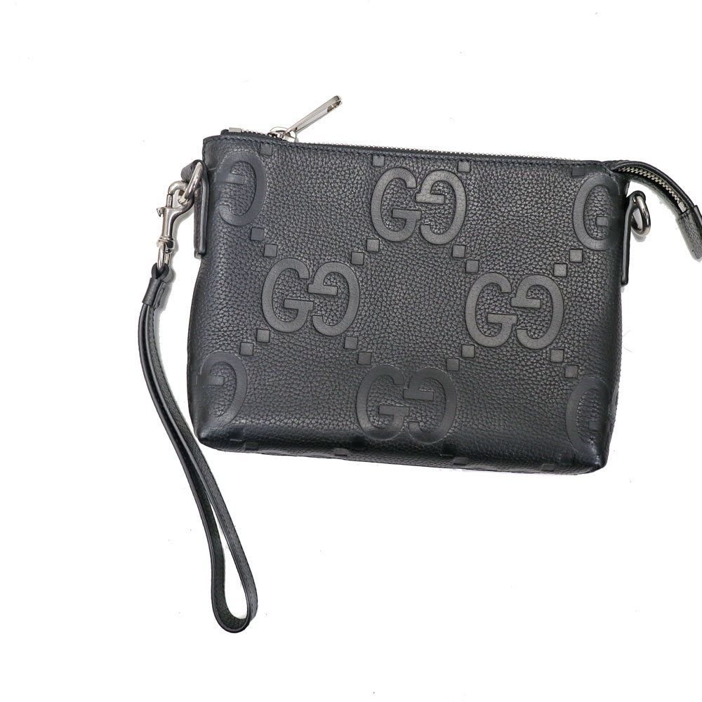 ジャンボGGの柄が目を惹き、落ち着いたブラックのレザーがシックな印象をもたらします。 クラッチバッグとしてだけでなく、付属のショルダーストラップを付ければショルダーバッグとして使える機能的なアイテムです。