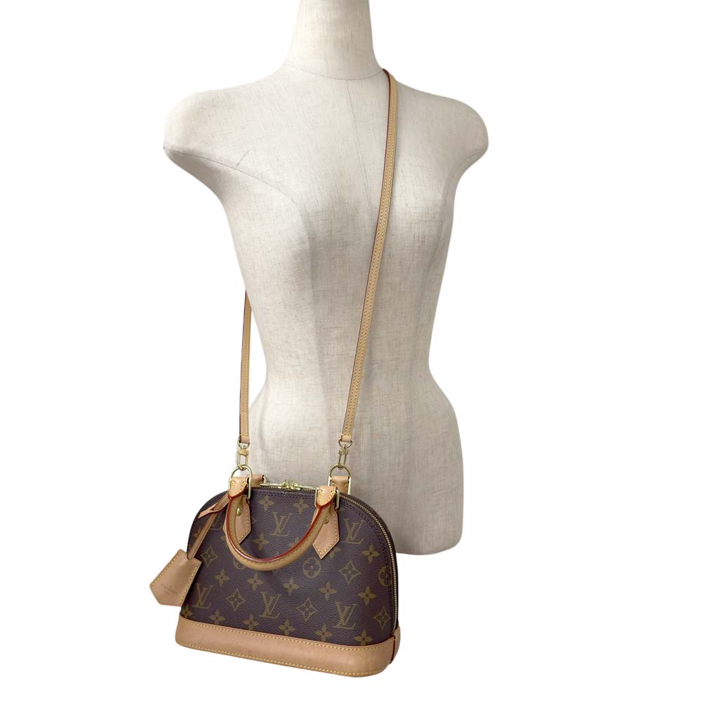 | 商品説明 | ルイヴィトンの「アルマ BB(型番:M53152)」は、1934年に登場したアールデコ調のデザインを受け継ぐ、コンパクトで洗練された2WAYバッグです。モノグラム・キャンバスとヌメ革の組み合わせにより、クラシックでありながらモダンな印象を与えます。サイズは約23.5×17.5×11.5cmで、スマートフォンや財布、化粧品などの必需品を収納可能です。取り外し可能なショルダーストラップが付属しており、ハンドバッグとしてもクロスボディバッグとしても使用できます。ゴールドカラーの金具やパドロック、キーベルなど、細部にまでこだわったデザインが特徴です。 |