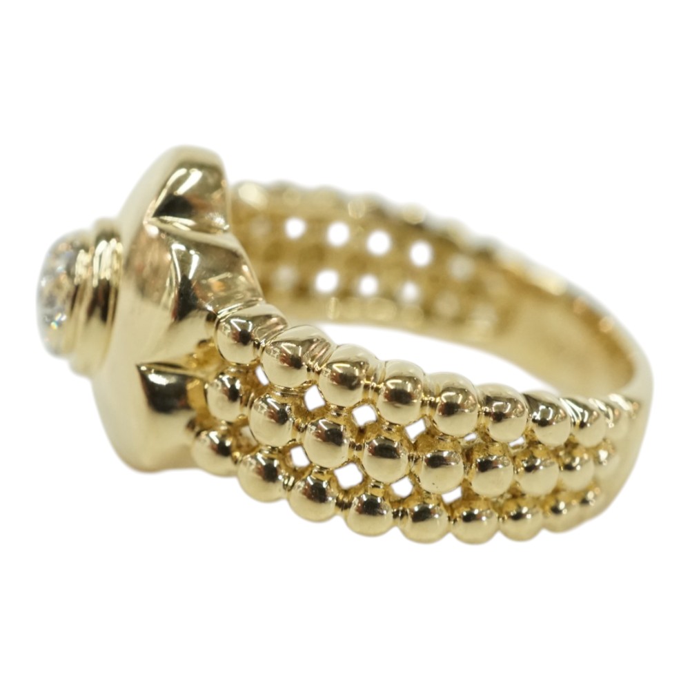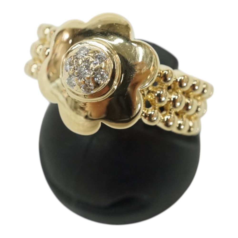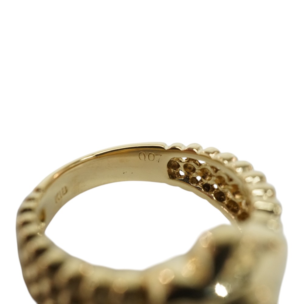 ダイヤモンドが施された存在感のある上品なデザインリングです。 お手元のアクセントにぜひいかがでしょうか。