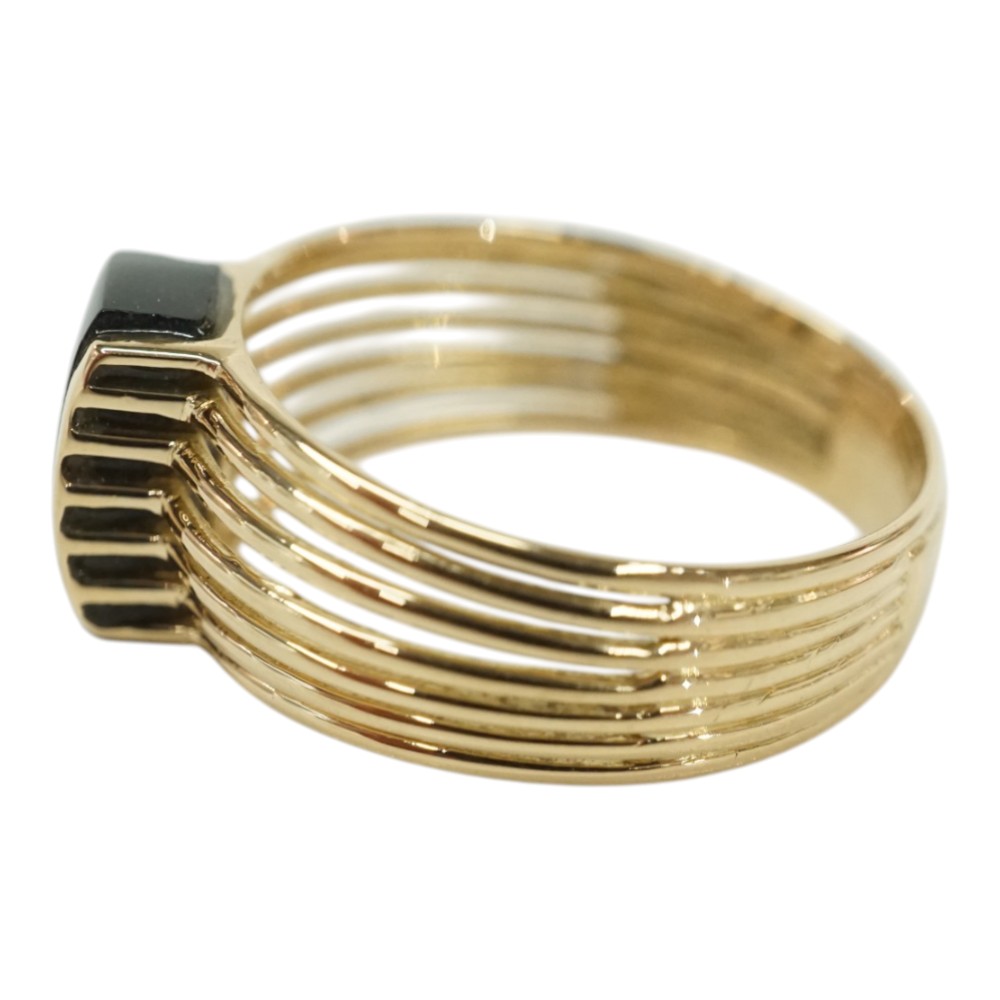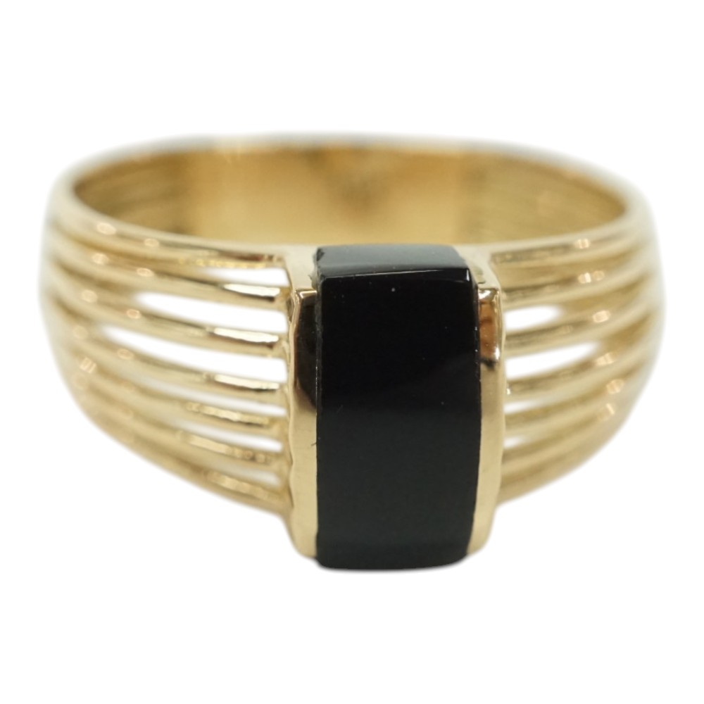 黒石が施された存在感のある上品なデザインリングです。 お手元のアクセントにぜひいかがでしょうか。