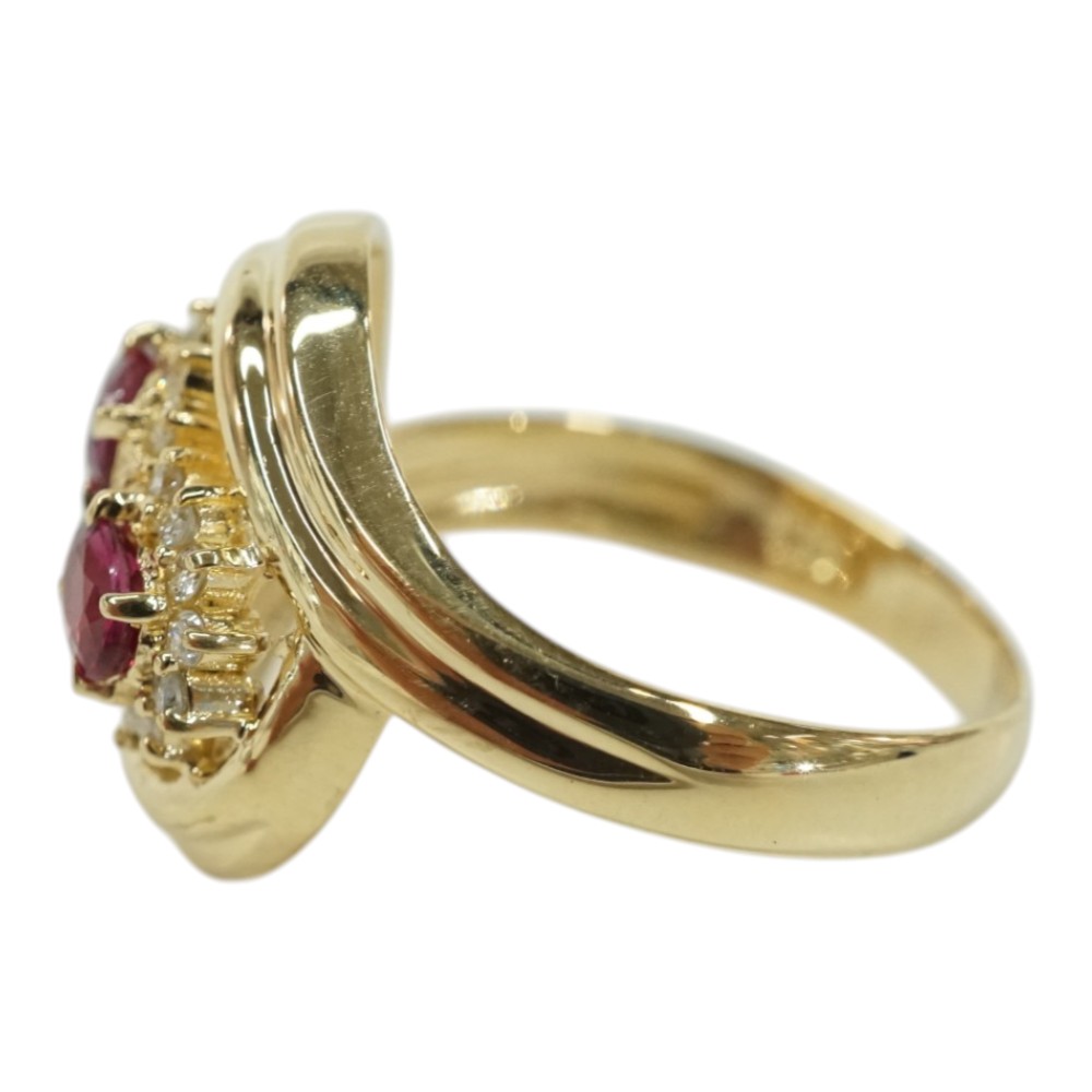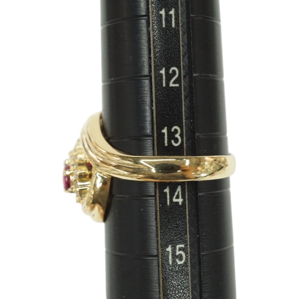ルビーとダイヤモンドが施された存在感のある上品なデザインリングです。 お手元のアクセントにぜひいかがでしょうか。