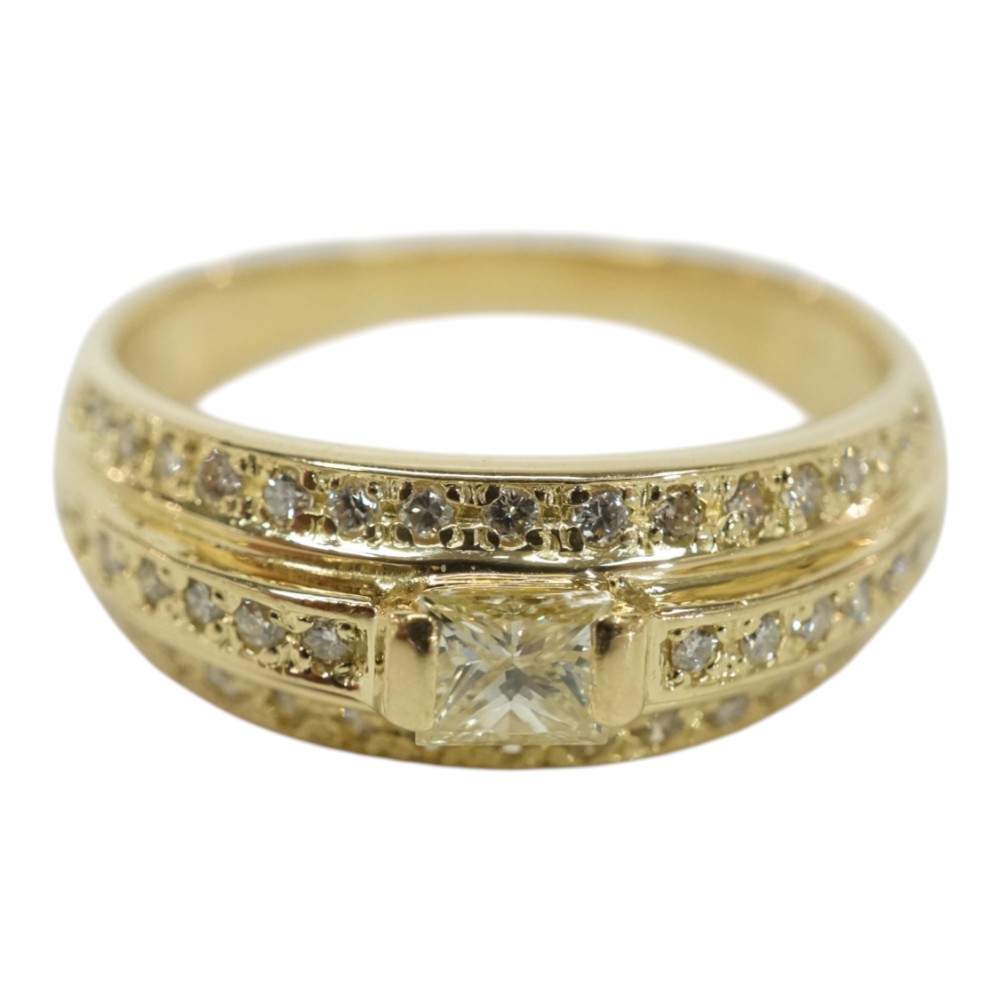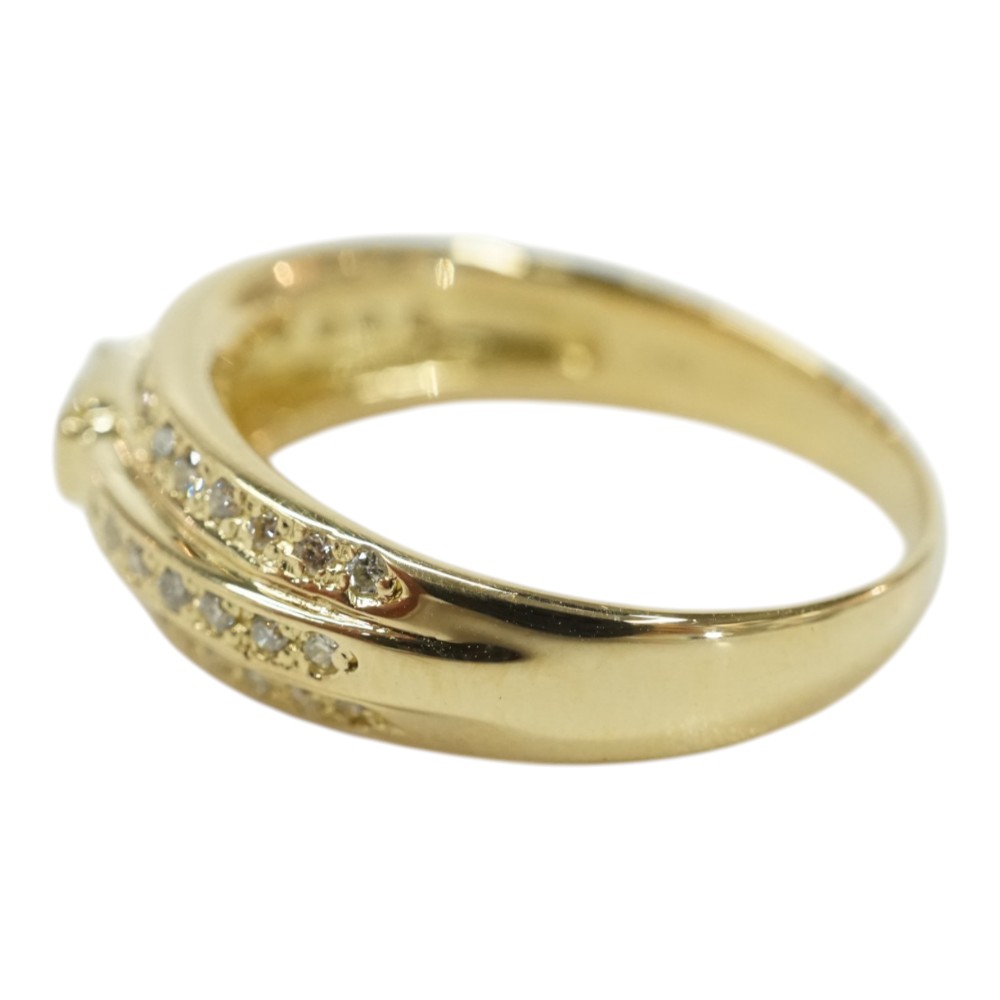 ダイヤモンドが施された存在感のある上品なデザインリングです。 お手元のアクセントにぜひいかがでしょうか。