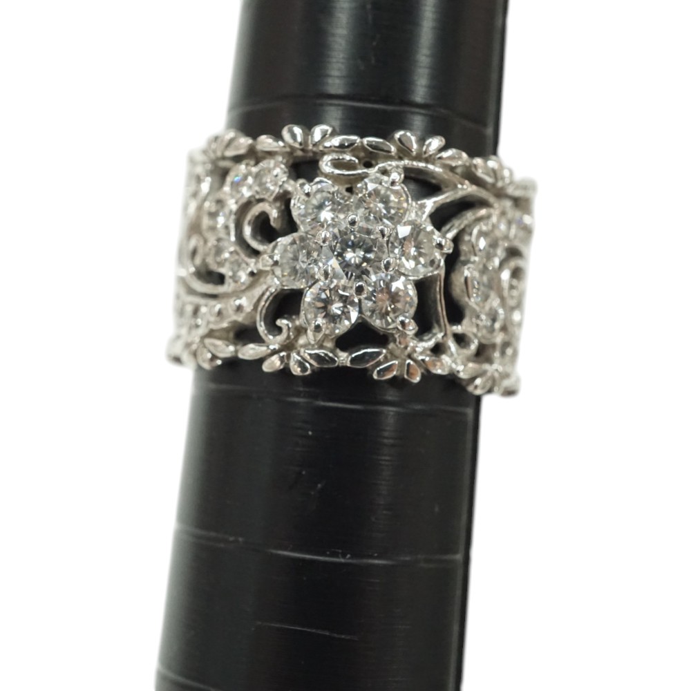 幅もあってゴージャスなデザインのリングです。 お手元のアクセントにぜひいかがでしょうか。