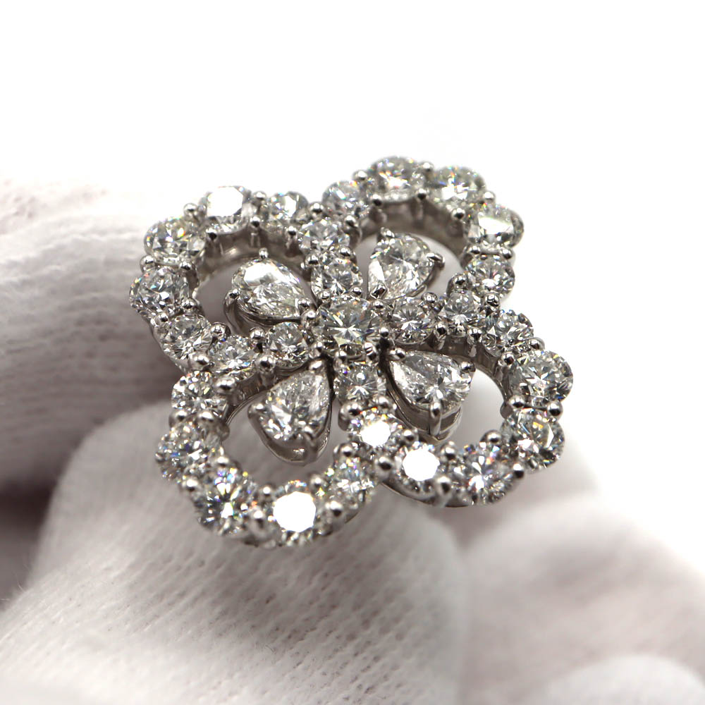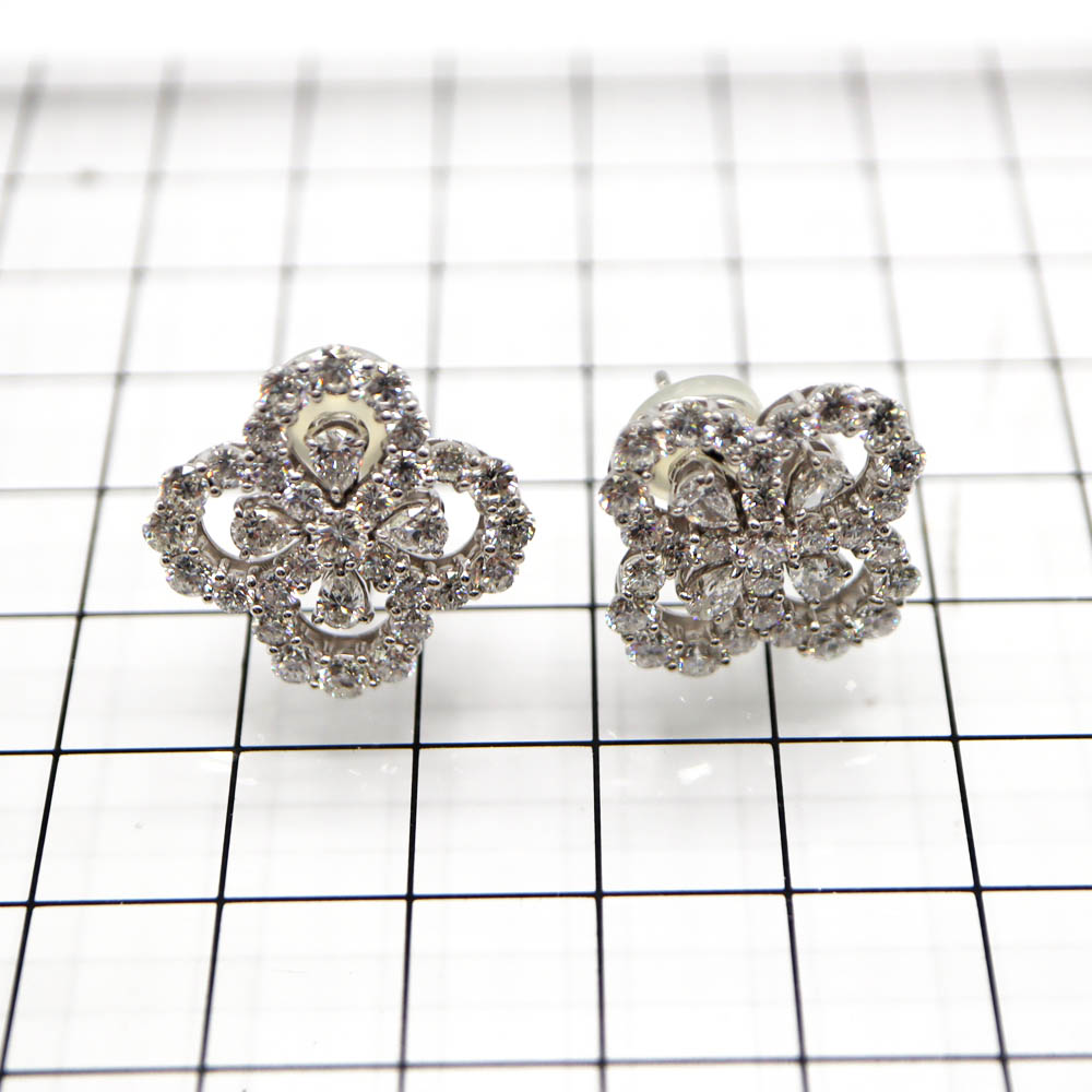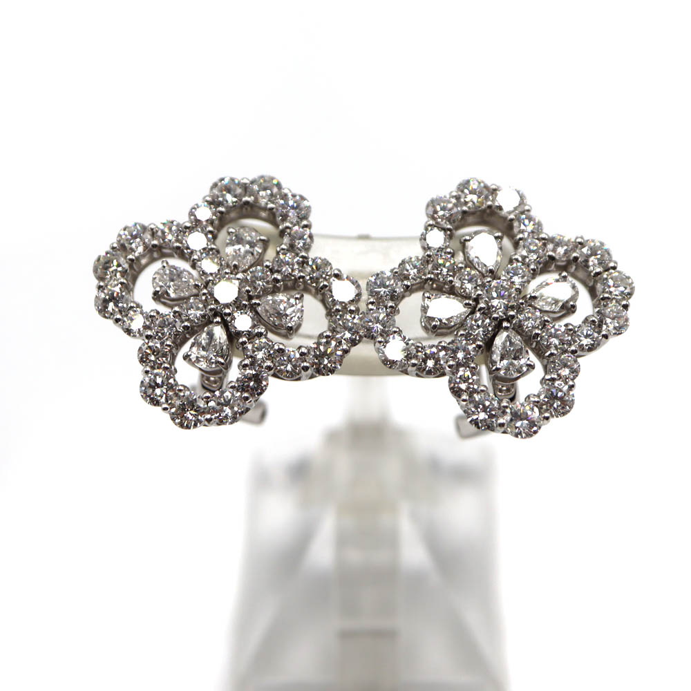 全部で2ct以上ものダイヤモンドが動くたびにきらめく大変美しいピアスです。 大振りのデザインで顔回りが華やかになり、パーティーシーン等に映えるピアスです。