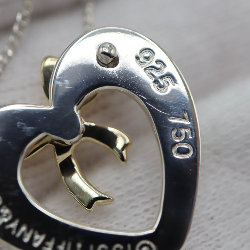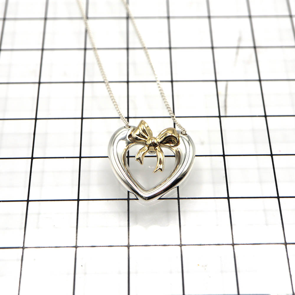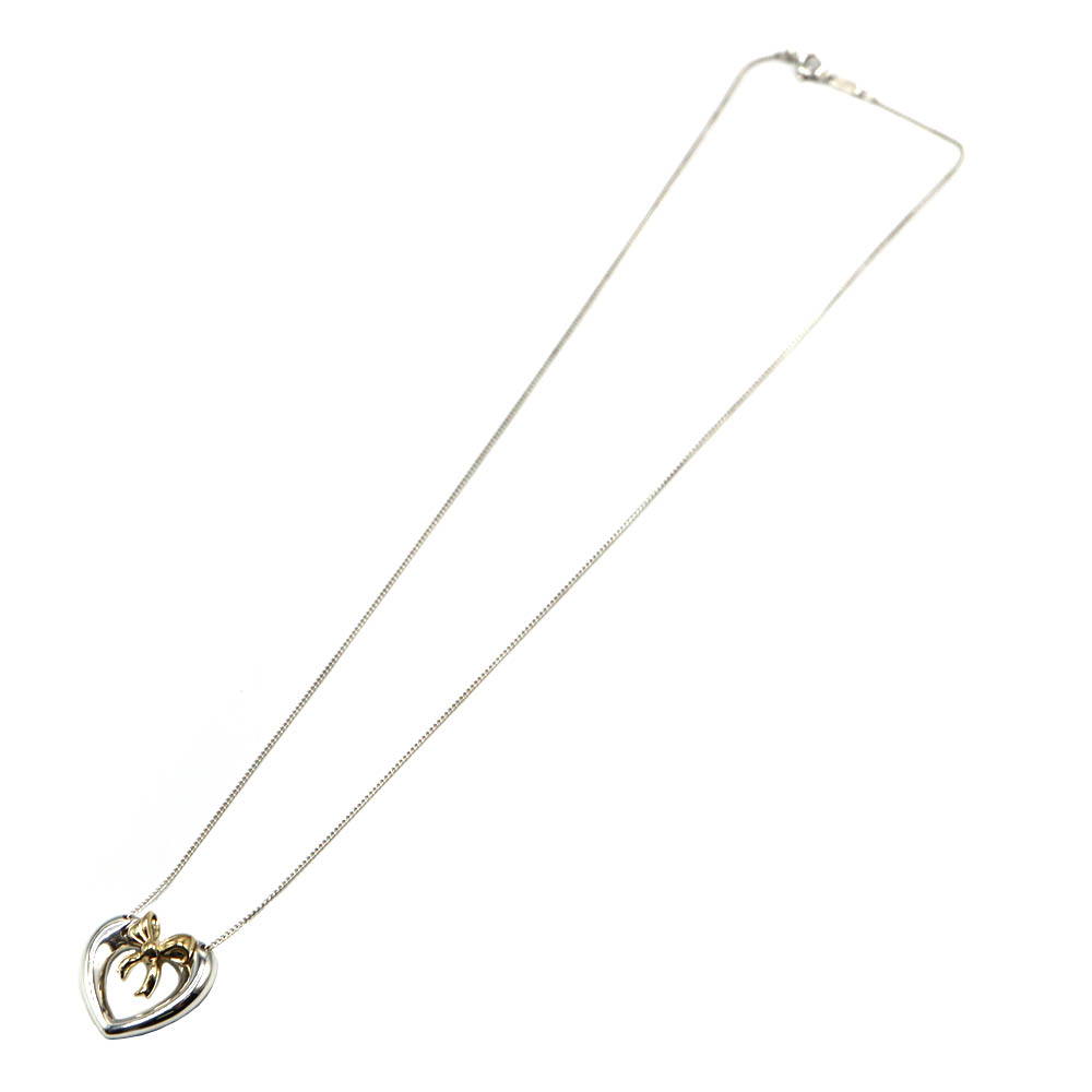 丸みのあるハートにリボンがついた可愛らしいネックレスです。 シンプルなデザインでオンオフ問わずお使いいただけます。 この機会に是非いかがでしょうか。 ※尚、当サイトの販売金額より店頭での販売金額の方をお安く設定させて頂いております。(一部セール品等を除く) ■2026年3月に当店委託業者にて新品仕上げ済み(金部分のみ)の商品です。