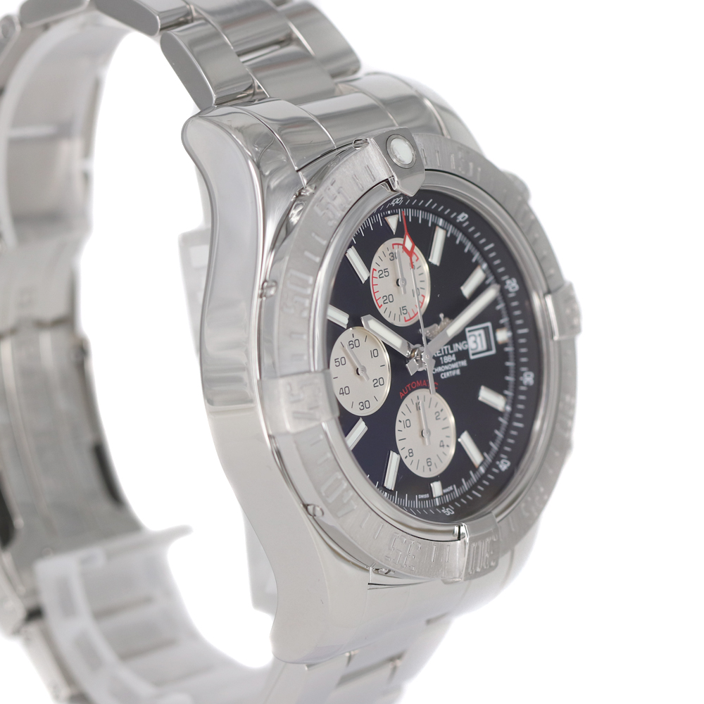 | 仕様 | キャリバー:ブライトリング13 パワーリザーブ:48時間 精度:日差+8~+9秒(平置き) 自動巻き クロノグラフ 防水:300m防水 カレンダー表示 逆回転防止ベゼル |
