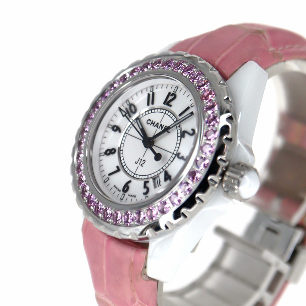 | 商品説明 | シャネルの中でも人気定番のJ12はスポーティな時計ながら上品さも兼ね備えたお時計です。 こちらはベゼルに美しく輝いたピンクサファイアが装飾されております。 人気モデルの為お探しの方はこの機会に是非いかがでしょうか。 ※尚、当サイトの販売金額より店頭での販売価格の方をお安く設定させて頂いております。予め、ご了承下さいませ。(一部セール品等除く) |