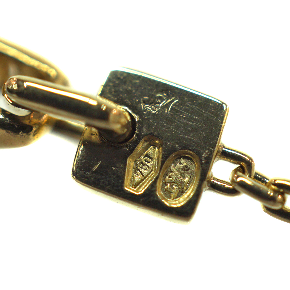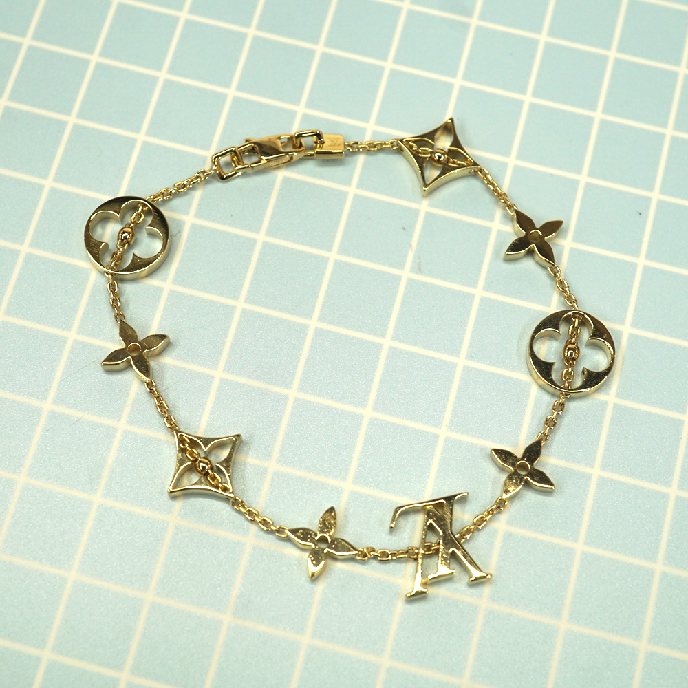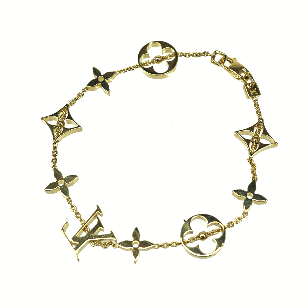 モノグラムがあしらわれたおしゃれなデザインのブレスレットです。 上質なK18イエローゴールドが上品なアイテムです。 ゴールドカラーで高級感のあるお品物です。 この機会にぜひいかがでしょうか。
