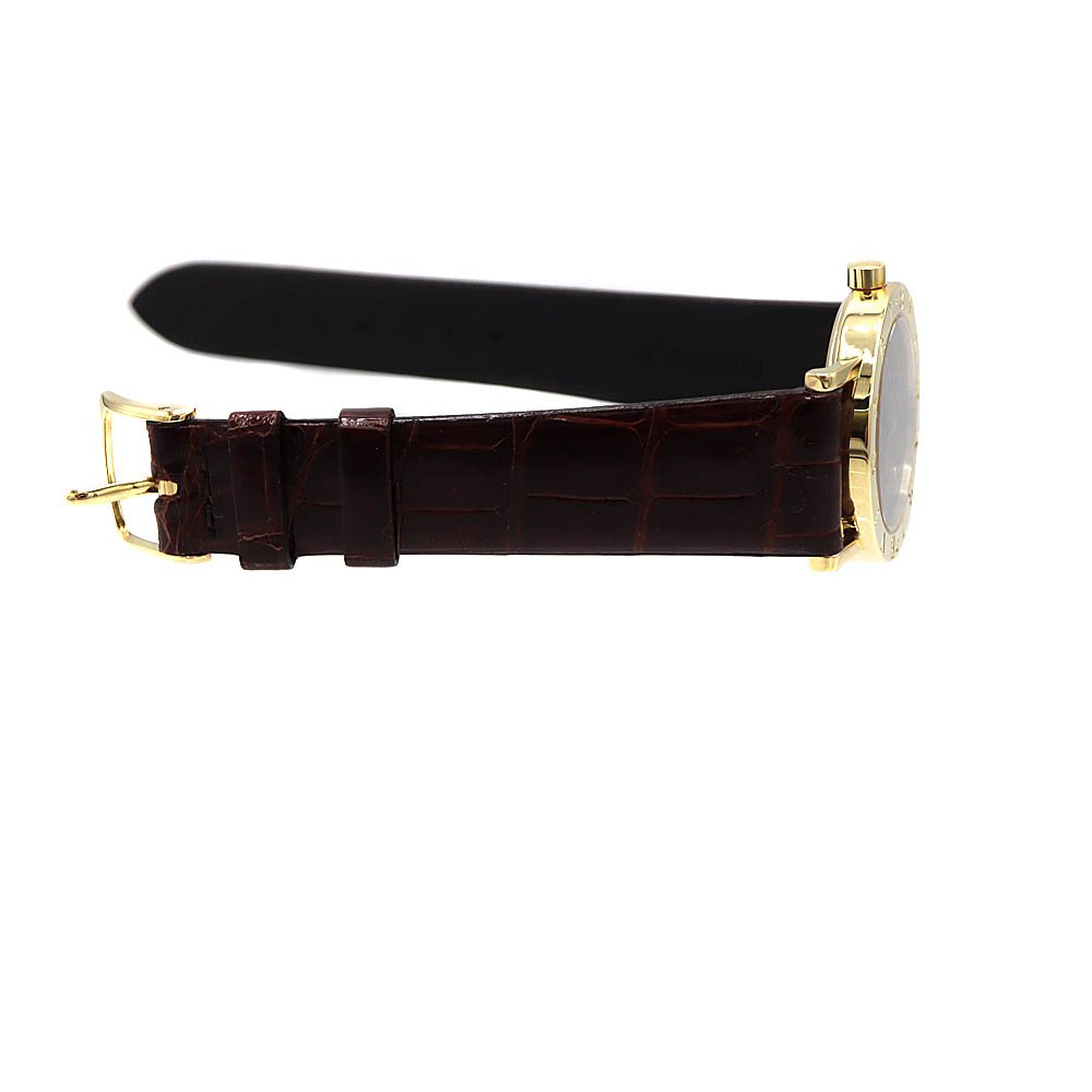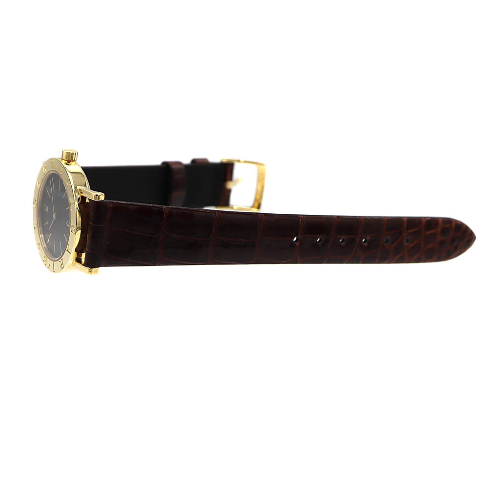 ベゼルには「BVLGARI BVLGARI」のロゴが刻まれ、一目で分かる存在感のある仕上がり。