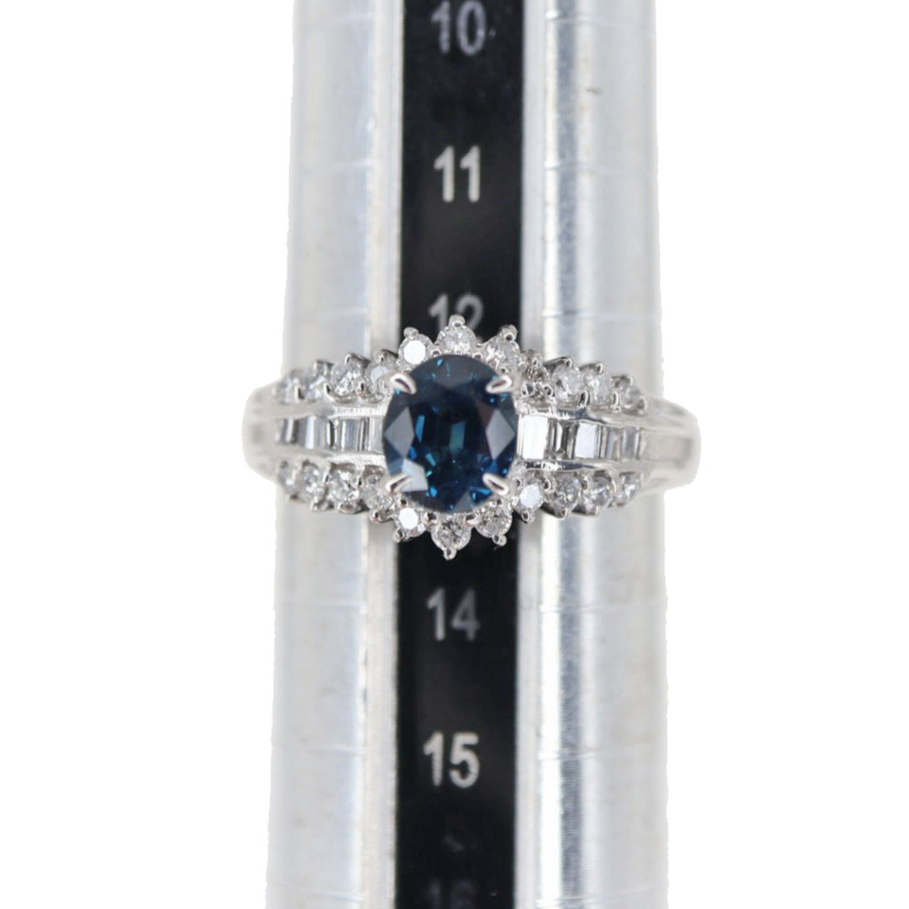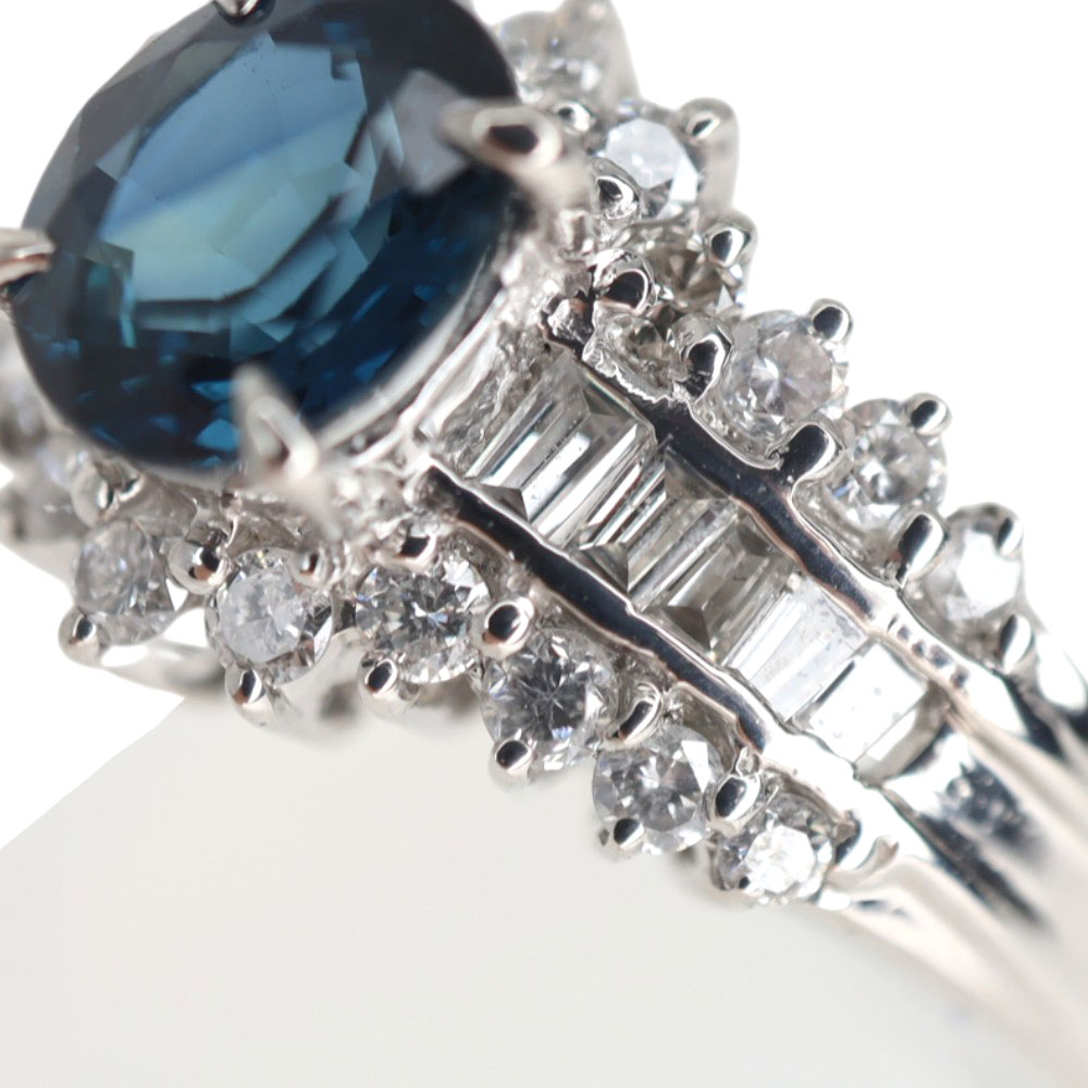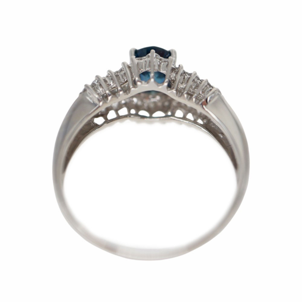 サファイアの深い青が美しいリングです。 中央のサファイアを囲うようにダイヤモンドがセッティングされており華やかさのあるアイテムとなっております。 手元を華やかにしてくれるアクセントにピッタリです。