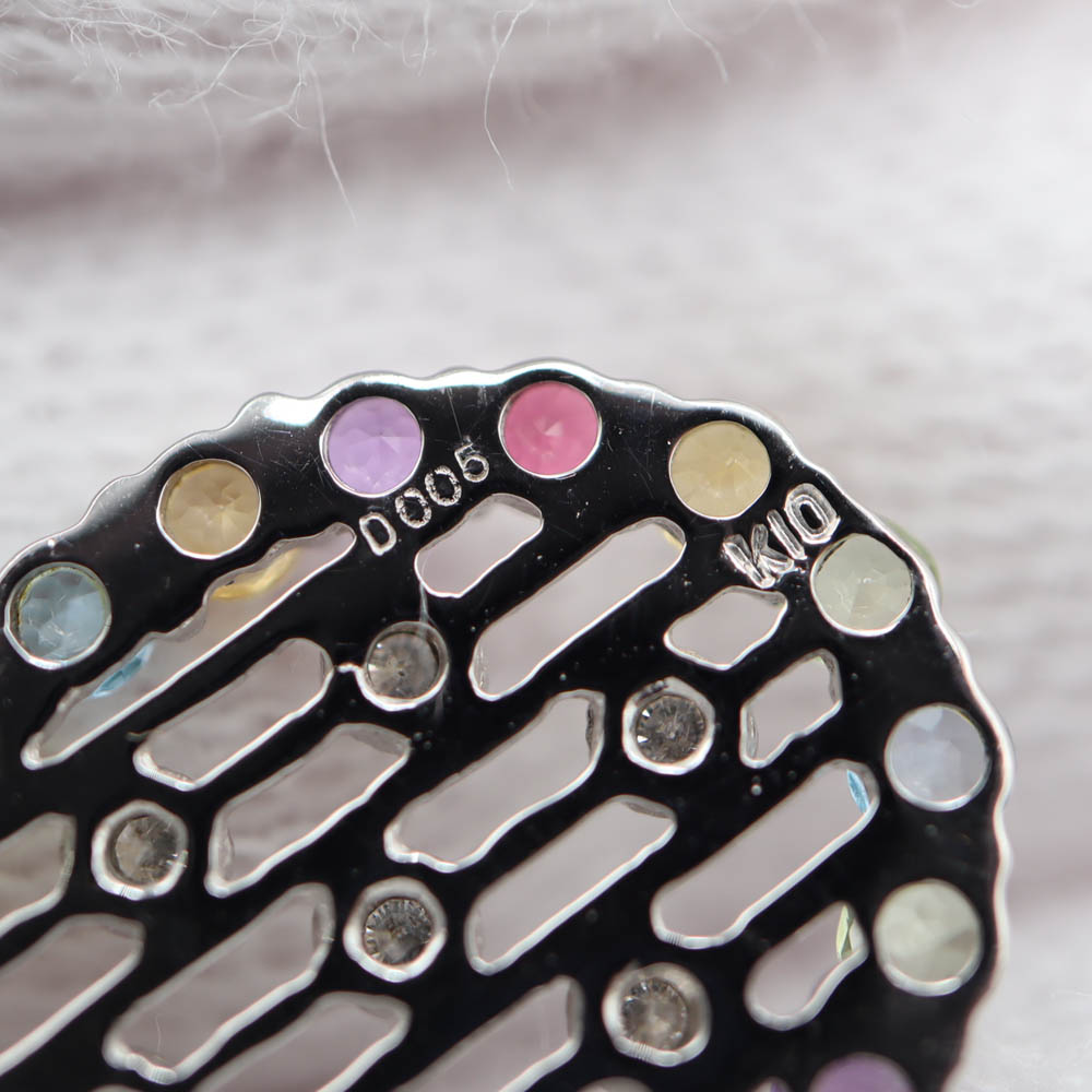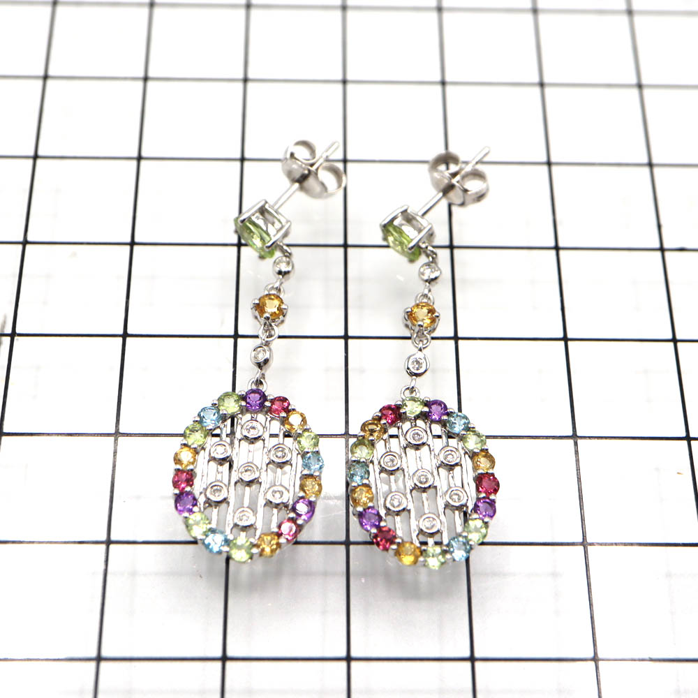 | 商品説明 | K10WGカラーストーン付ピアスのご紹介です。 【K10刻印有】 カラフルなストーンとダイヤモンドが揺れる可愛らしいデザインのピアスです。 ※1マス、1cm×1cmのマスの上で撮影しています。 ※当店にて【新品仕上げ】済ですが取り切れないキズが残っていることがございます。