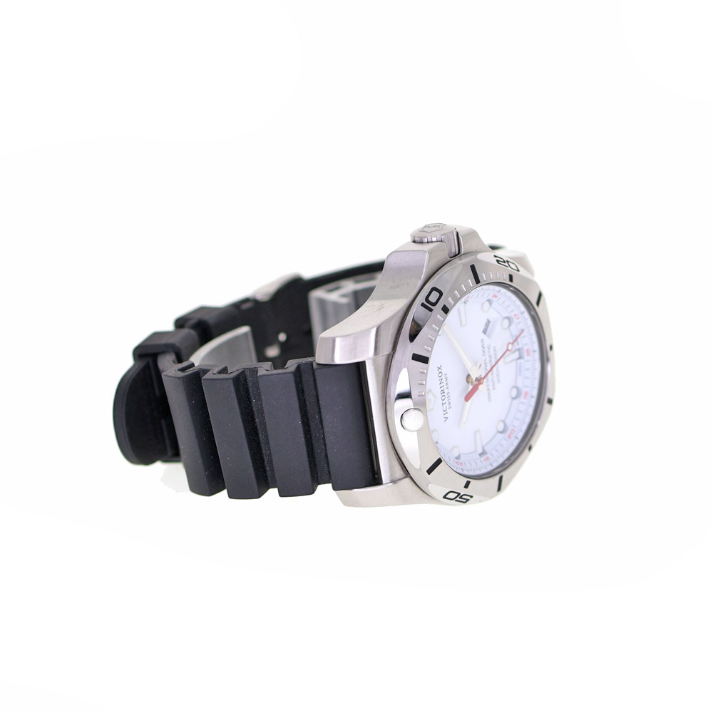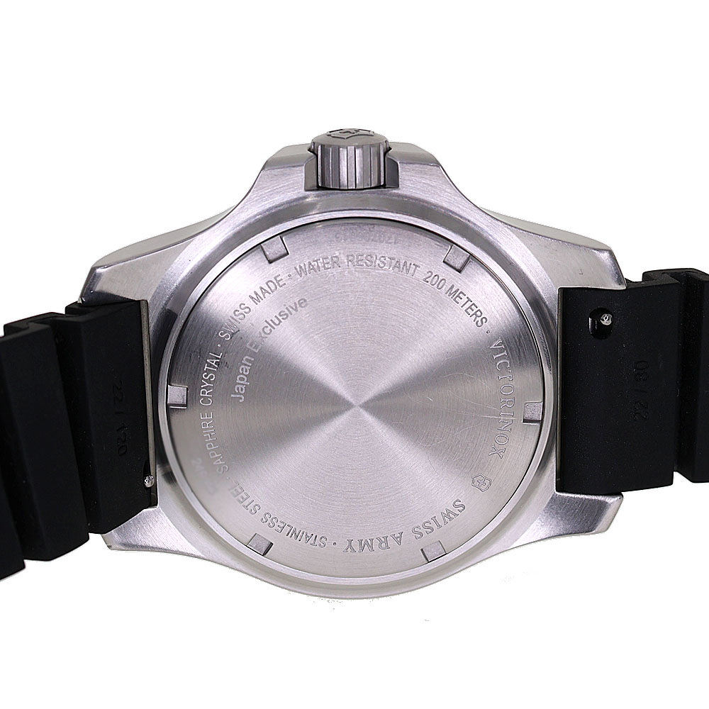 Victorinox 249123は、スイスの老舗ブランドが展開する I.N.O.X. Professional Diverシリーズのダイバーズウォッチ。 300m防水性能とISO規格に準拠した本格仕様を備え、 過酷な環境下でも高い信頼性を発揮する。 ステンレスケースとサファイアクリスタル風防により、 耐衝撃性・耐傷性に優れ、逆回転防止ベゼルや高輝度の夜光インデックスによって 水中での視認性も確保。アウトドアやマリンスポーツだけでなく、 日常使いにも適したタフネスウォッチです。