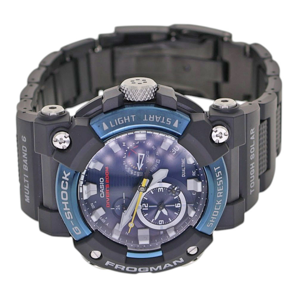 MASTER OF Gシリーズの中でISO規格200m潜水用防水機能を備えた“FROGMAN”のアナログモデルです。コンポジットバンドを採用し、ウェットスーツの上から着けやすいよう中留にエクステンション機構を搭載。平常時は折りたたむことで、快適な長さでお使いいただけます。中ゴマにファインレジンパーツを使用し強度と軽さを両立。ベースモデルは、シリーズ誕生となる1993年から継承している左右非対称のフェイスデザインに、アナログ表示を実現したGWF-A1000です。