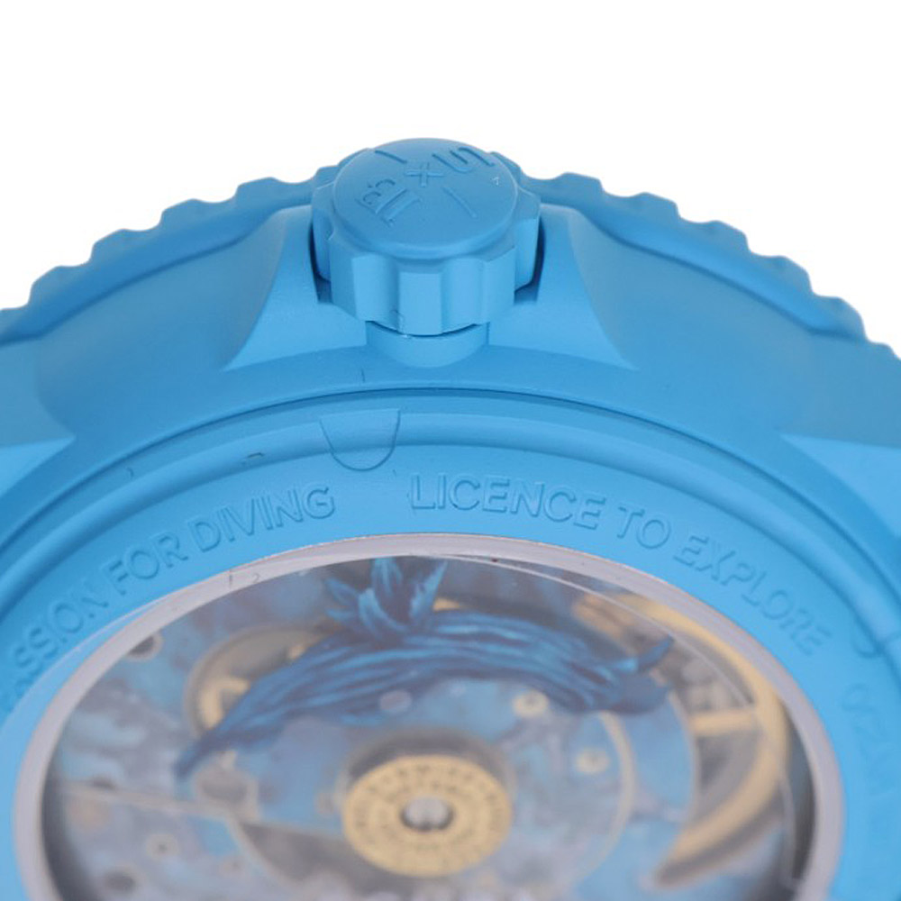 ダイバーズウォッチの名作を現代的に再解釈したモデル。 ターコイズブルーのバイオセラミックケースとグラデーションダイヤルが特徴で、軽量かつ耐久性に優れています。 ムーブメントには自動巻きSISTEM51を搭載し、約90時間のロングパワーリザーブを実現。 夜光塗料により暗所での視認性も高く、裏蓋からは海をモチーフにしたデザインが楽しめます。 環境配慮素材を使用し、機械式時計をカジュアルに楽しめる一本。 この機会にぜひいかがでしょうか。