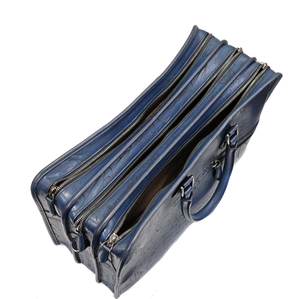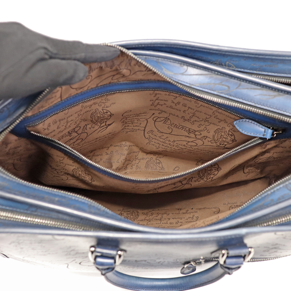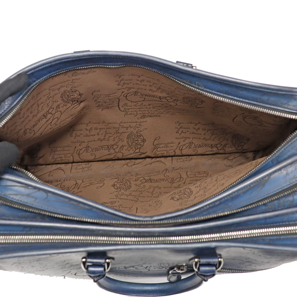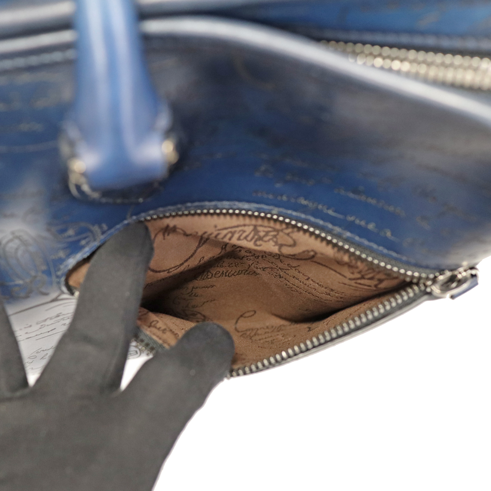 深みのあるネイビーカラー、カーフレザーの柔らかさはベルルッティのエレガントさを演出。 収納力はもちろん、内側も大きめのファスナーポケットやシューホーンポケットなどの機能性も兼ね備えた優秀なアイテムです。
