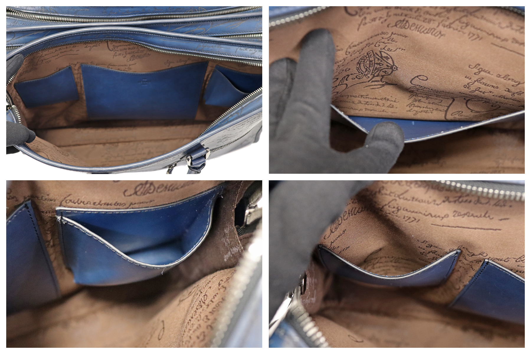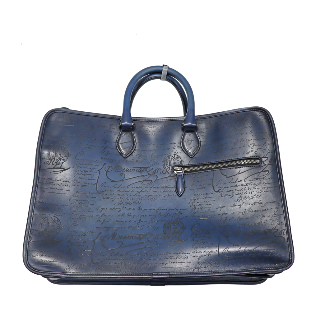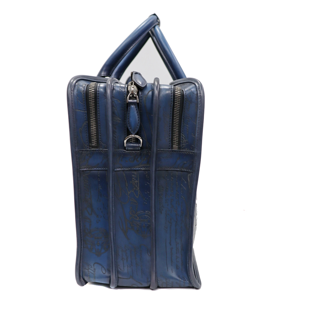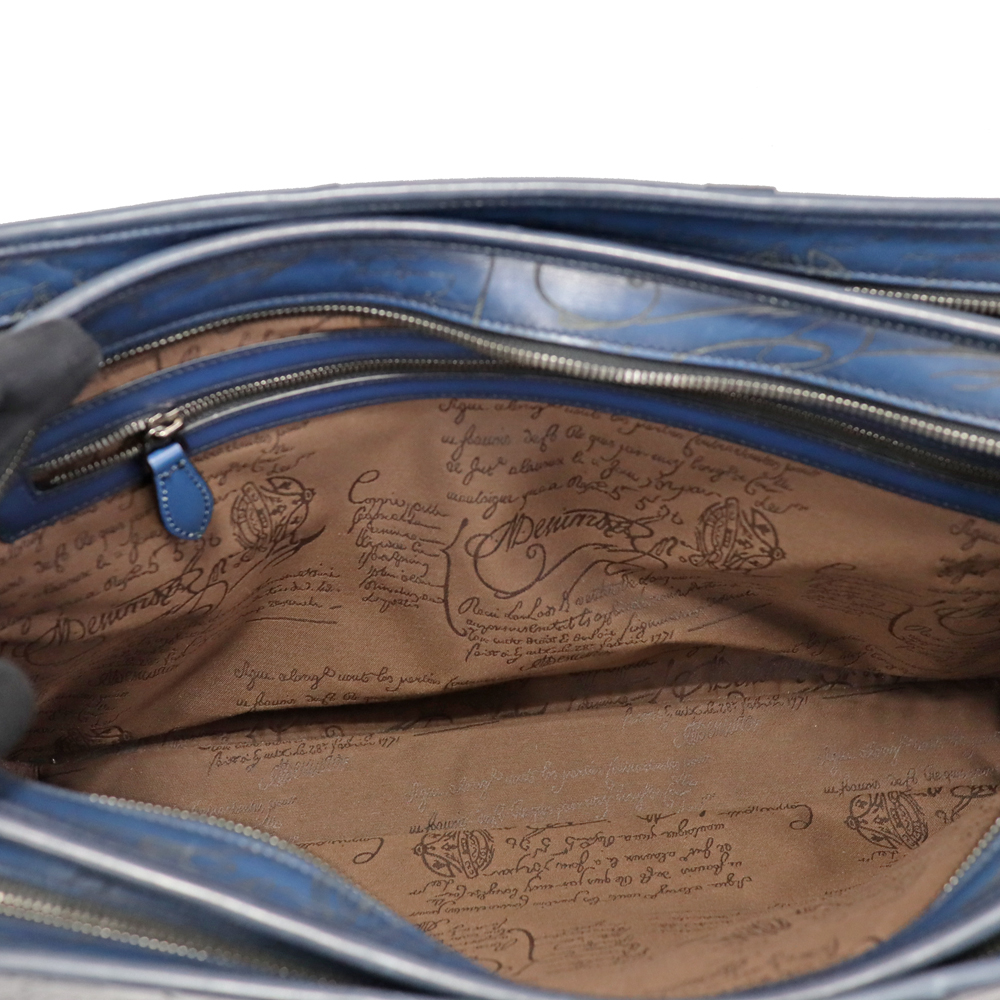 深みのあるネイビーカラー、カーフレザーの柔らかさはベルルッティのエレガントさを演出。 収納力はもちろん、内側も大きめのファスナーポケットやシューホーンポケットなどの機能性も兼ね備えた優秀なアイテムです。