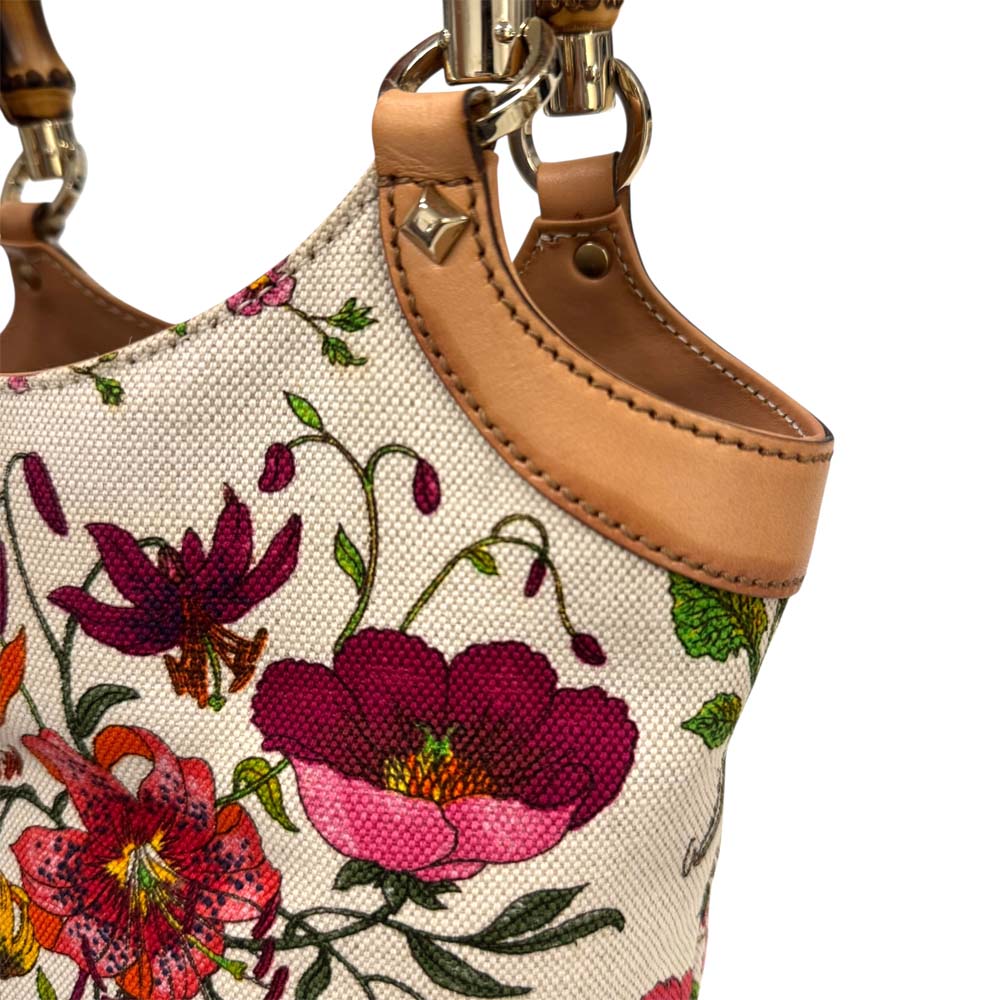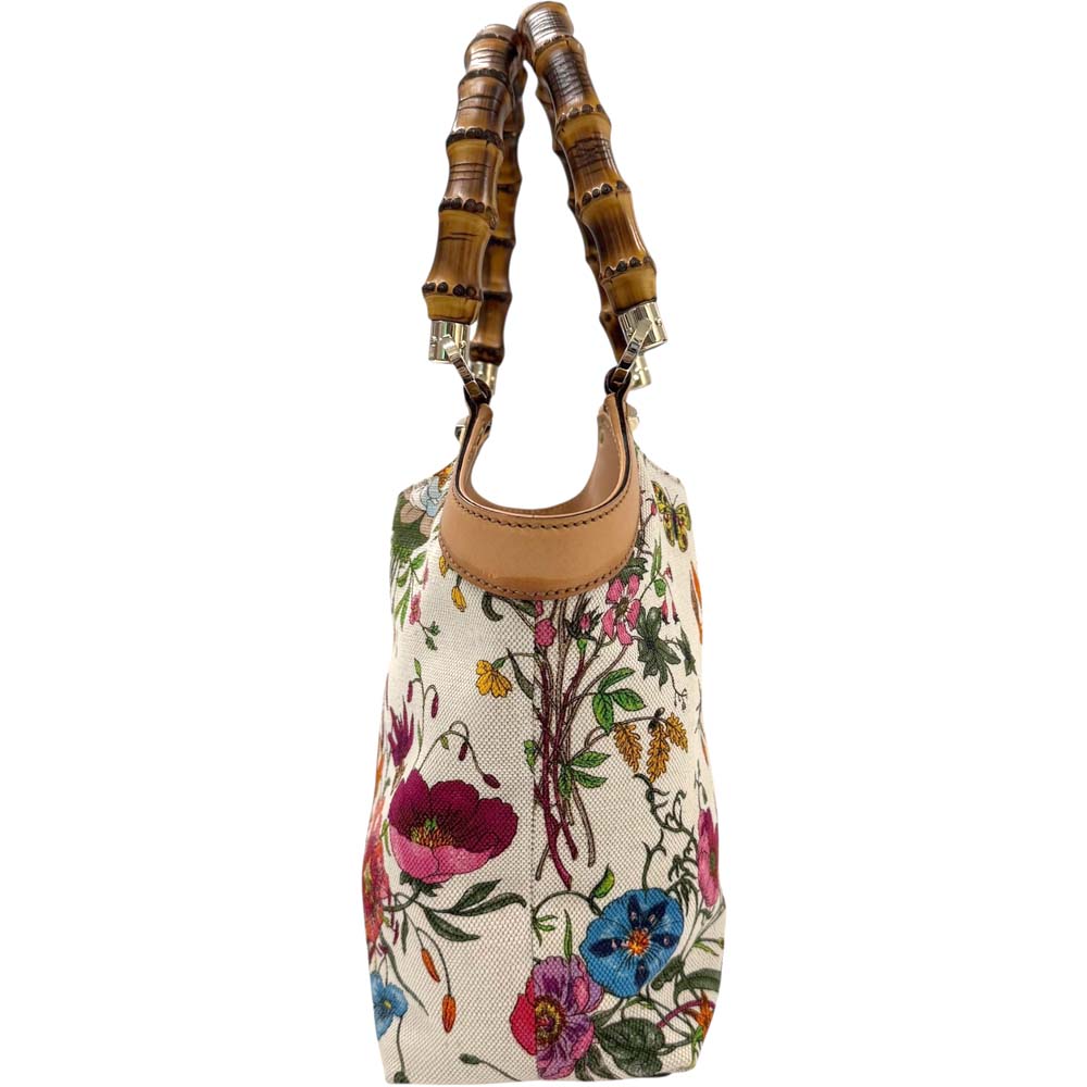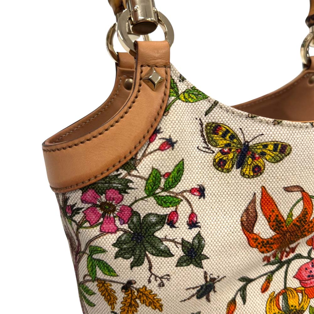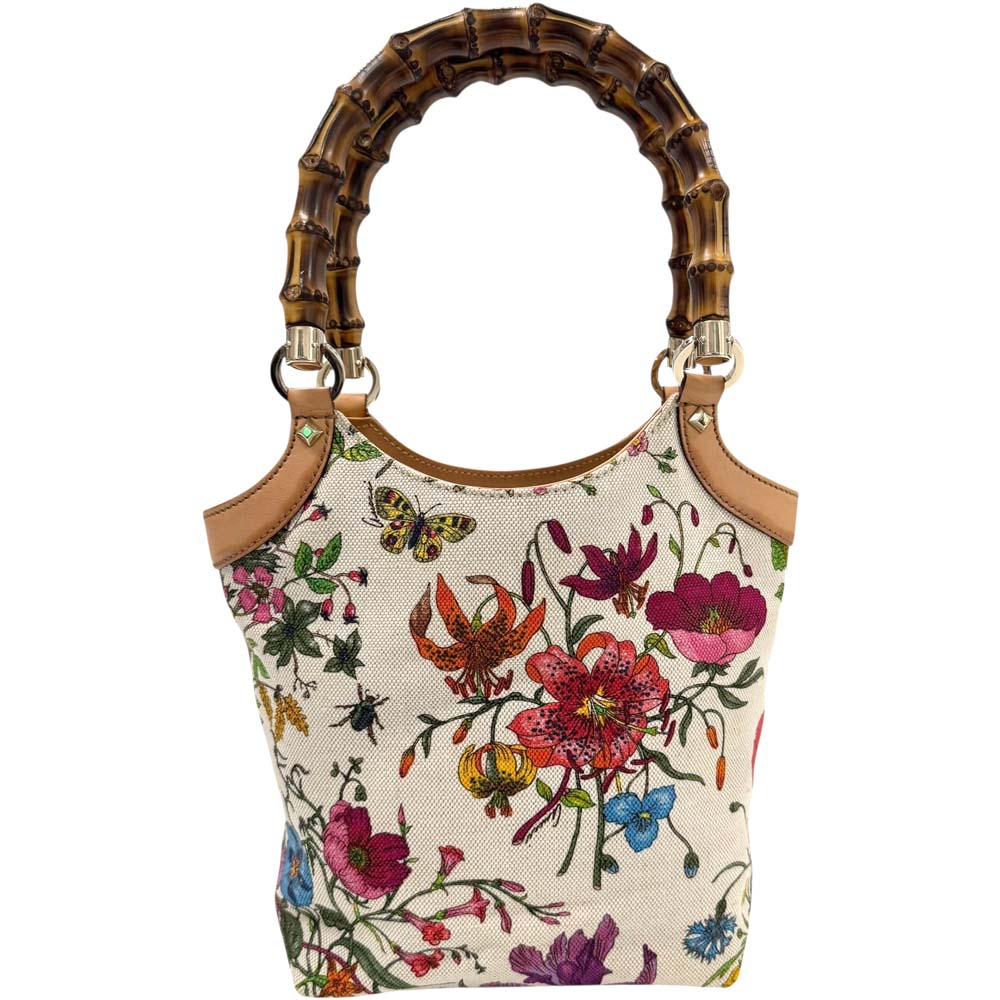 | 商品説明 | グッチのアイコニックなバンブーハンドルと色とりどりの花柄プリントが調和した、上品で華やかなハンドバッグです。キャンバスとレザーのコンビ素材が高級感を醸しつつも使い勝手の良さを両立し、日常から特別なシーンまで幅広く活躍します。コンパクトなサイズ感ながら内部には収納ポケットが備わり、実用性にも優れています。竹のナチュラルな質感がアクセントとなり、装いに柔らかな印象をプラスします。丁寧な仕立てと繊細なプリントがまとうたびに魅力を引き立て、長く愛されるデザインです。 |