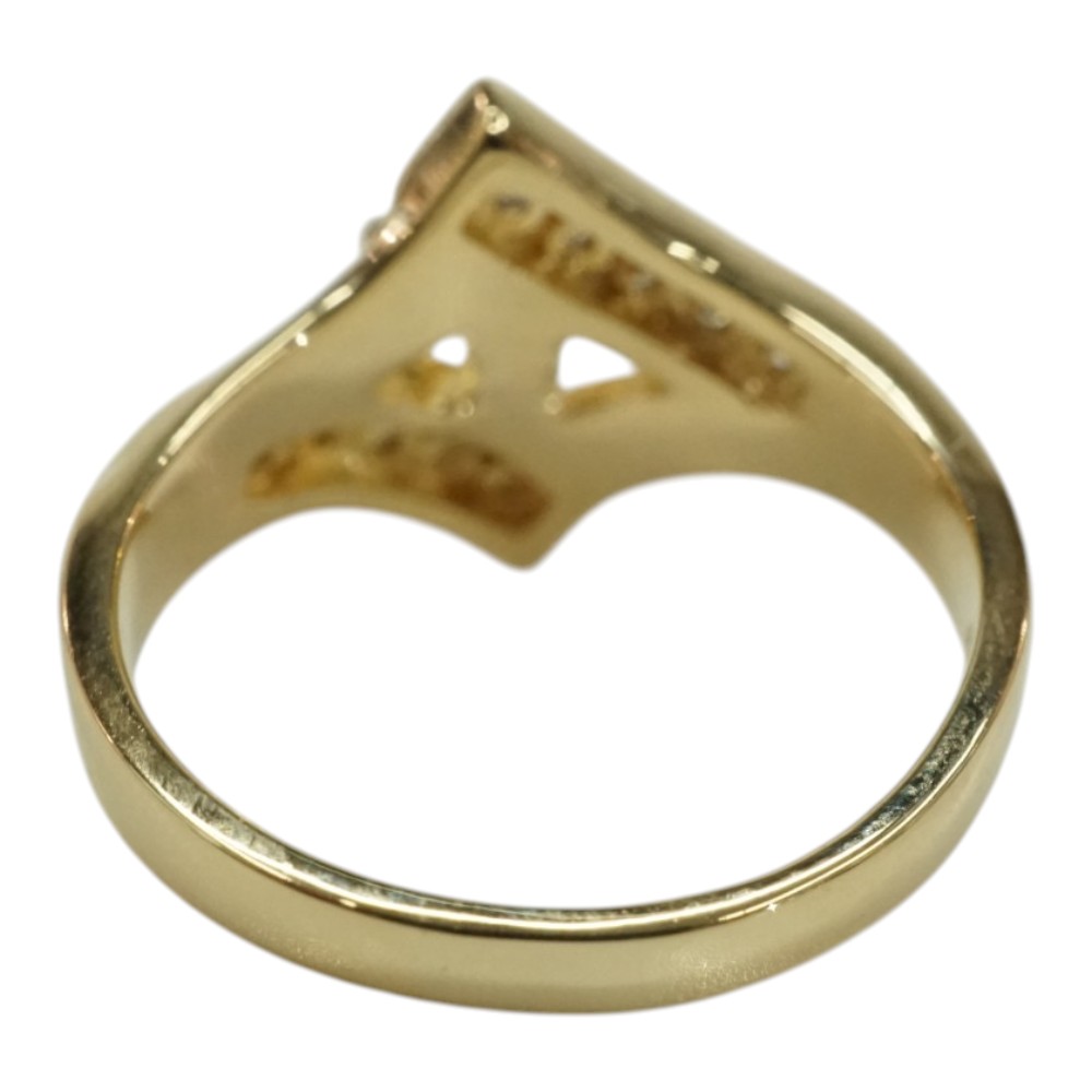 ダイヤモンドが施された存在感のある上品なデザインリングです。 お手元のアクセントにぜひいかがでしょうか。