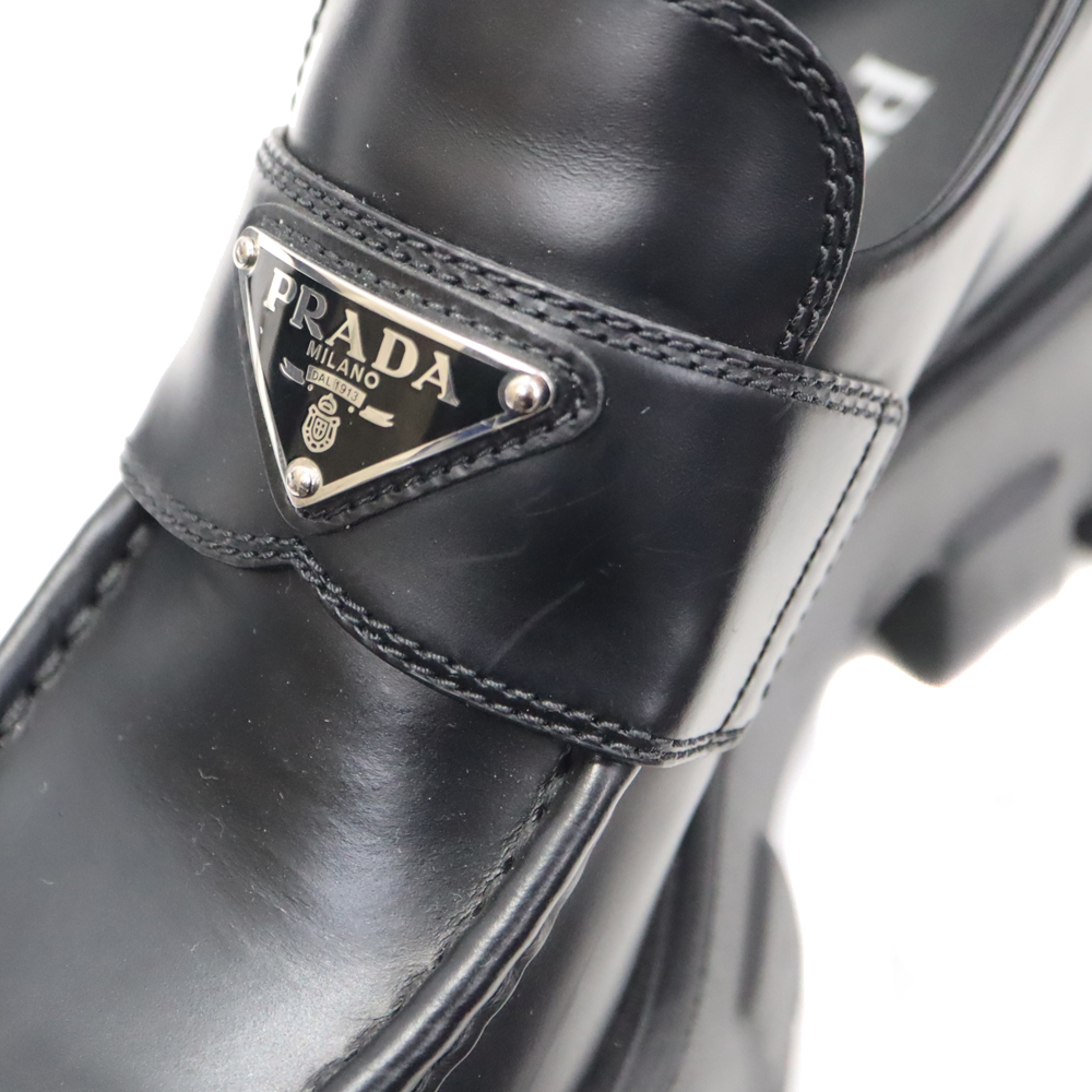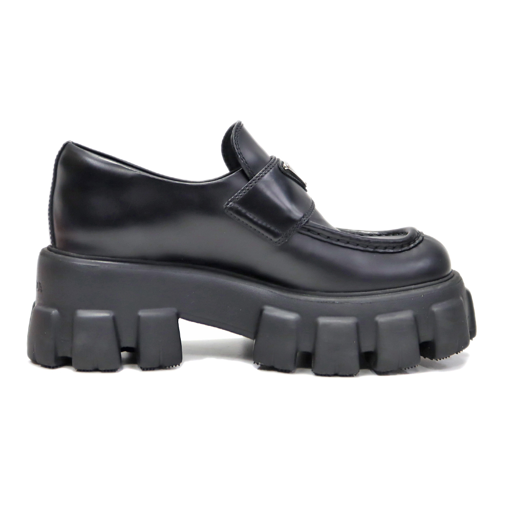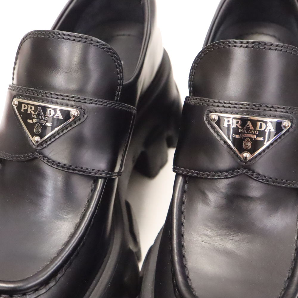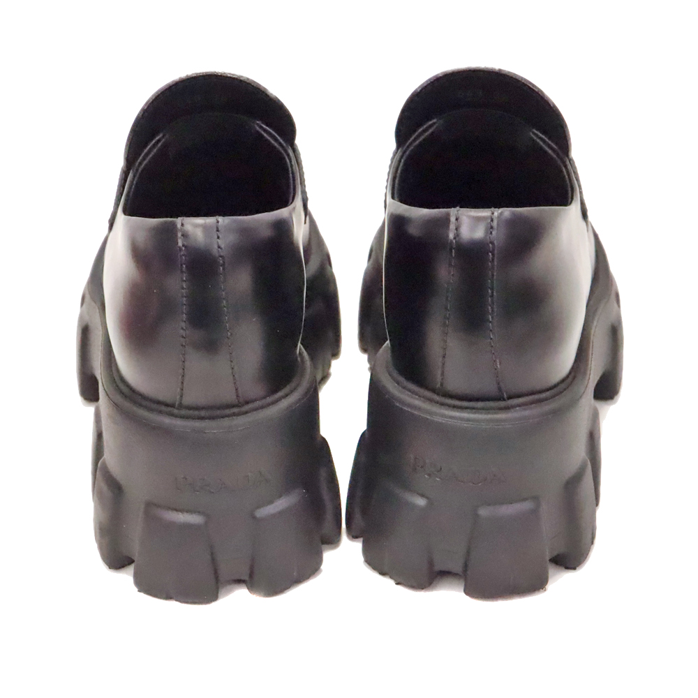 | 商品説明 | PRADA【プラダ】モノリスブラッシュドレザーローファーのご紹介です。 人気の厚底ローファーです。 ブラックのカラーでコーディネートに合わせやすい1点です。 この機会にぜひいかがでしょうか。