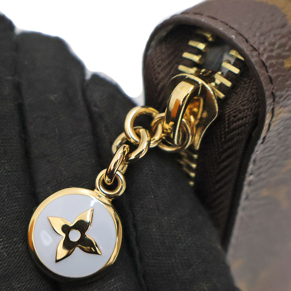 ゴールド金具やモノグラム・フラワーのチャームが華やかさを添え、内装には複数のコンパートメントやカードスロットを備え高い収納力を実現。 デザイン性と実用性を兼ね備えた、日常使いにも最適なラグジュアリーウォレットです。