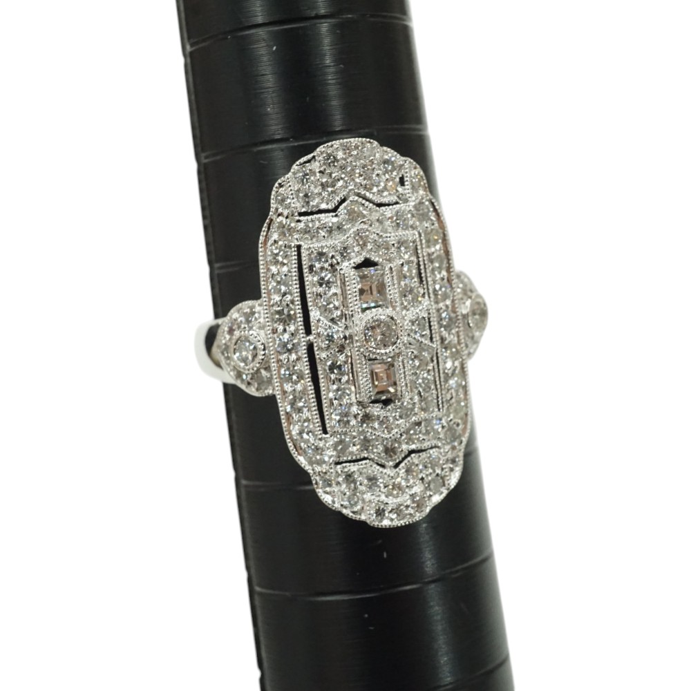 ダイヤモンドがきらびやかで豪華なデザインのリングです。 お手元のアクセントにぜひいかがでしょうか。