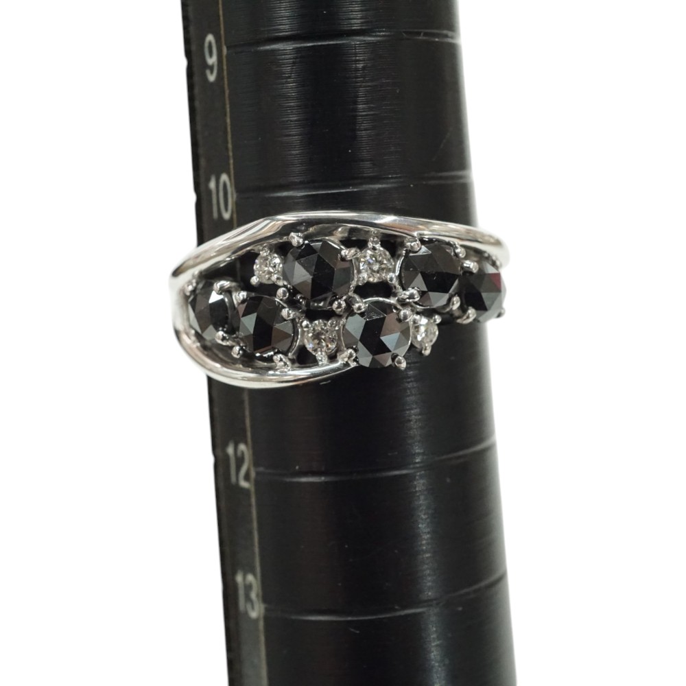 ブラックダイヤモンドが豪華にセッティングされた上品なデザインリングです。 指元のアクセントにおすすめです。 お探しの方はこの機会にぜひいかがでしょうか。