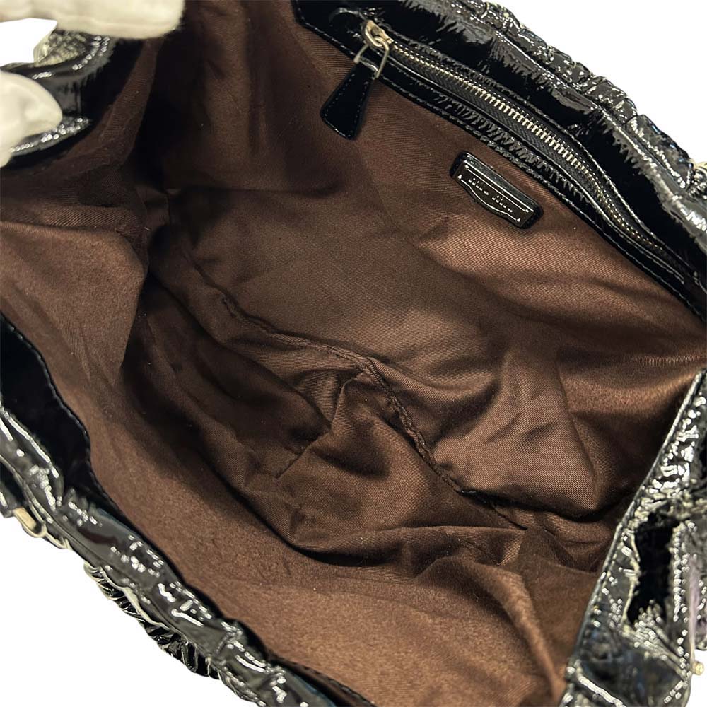| 商品説明 | ミュウミュウのエナメルトートバッグ「マテラッセ ギャザー」は、洗練されたデザインと高級感を漂わせるエナメル素材が魅力です。特徴的なギャザー仕立てが個性を引き立て、上質な仕上がりを実現。どんな装いにも優雅さをプラスします。 |