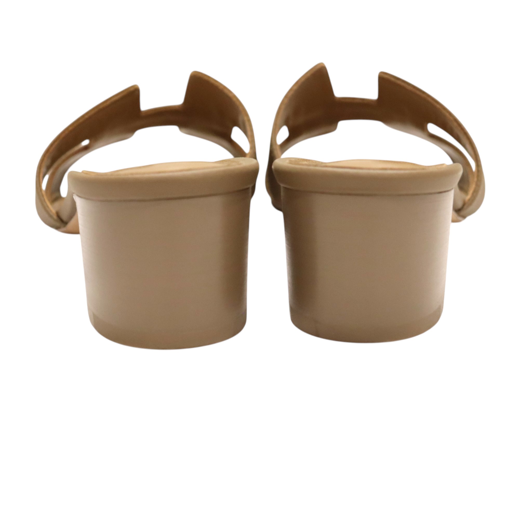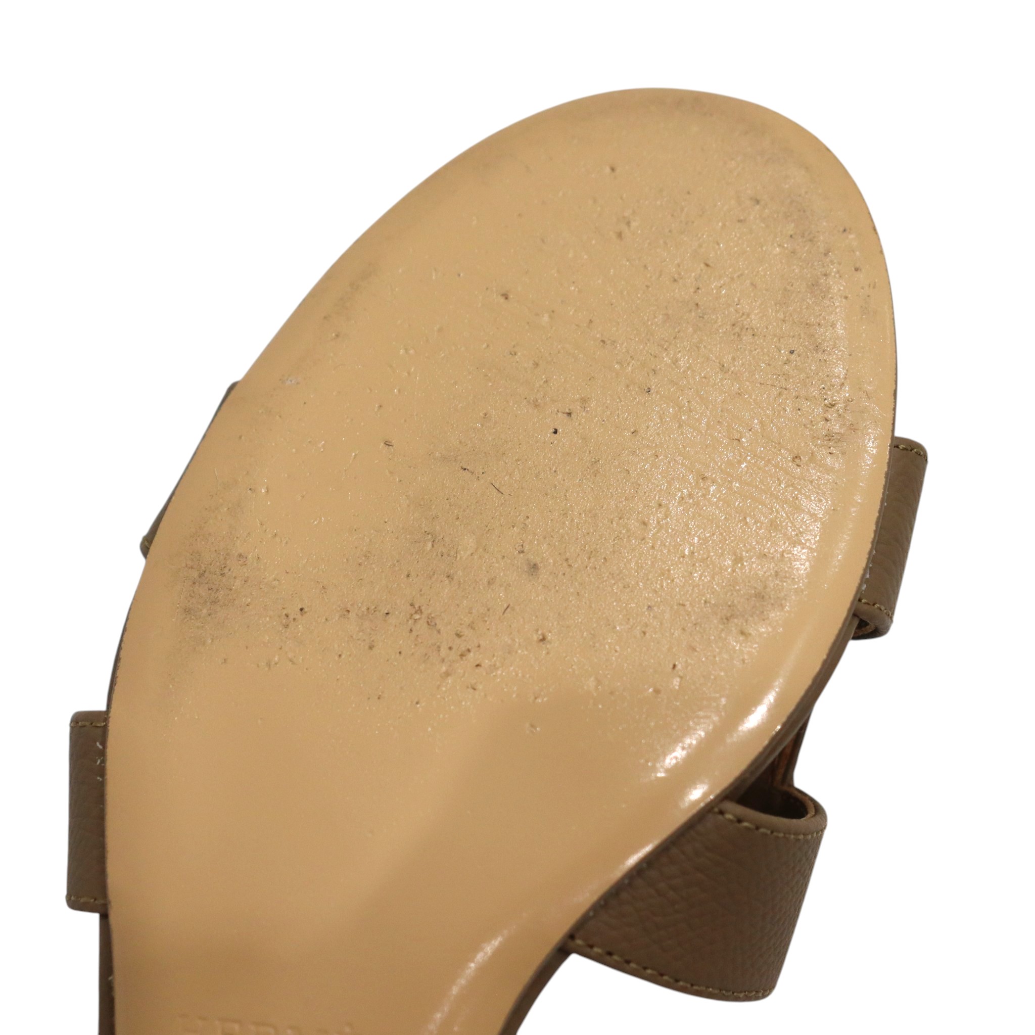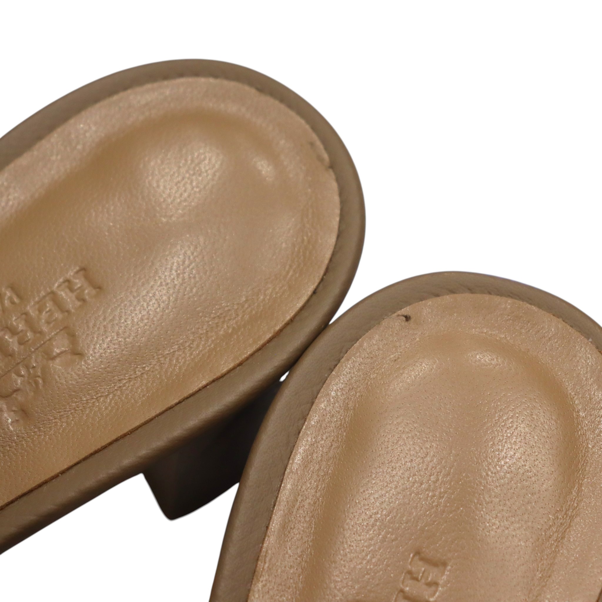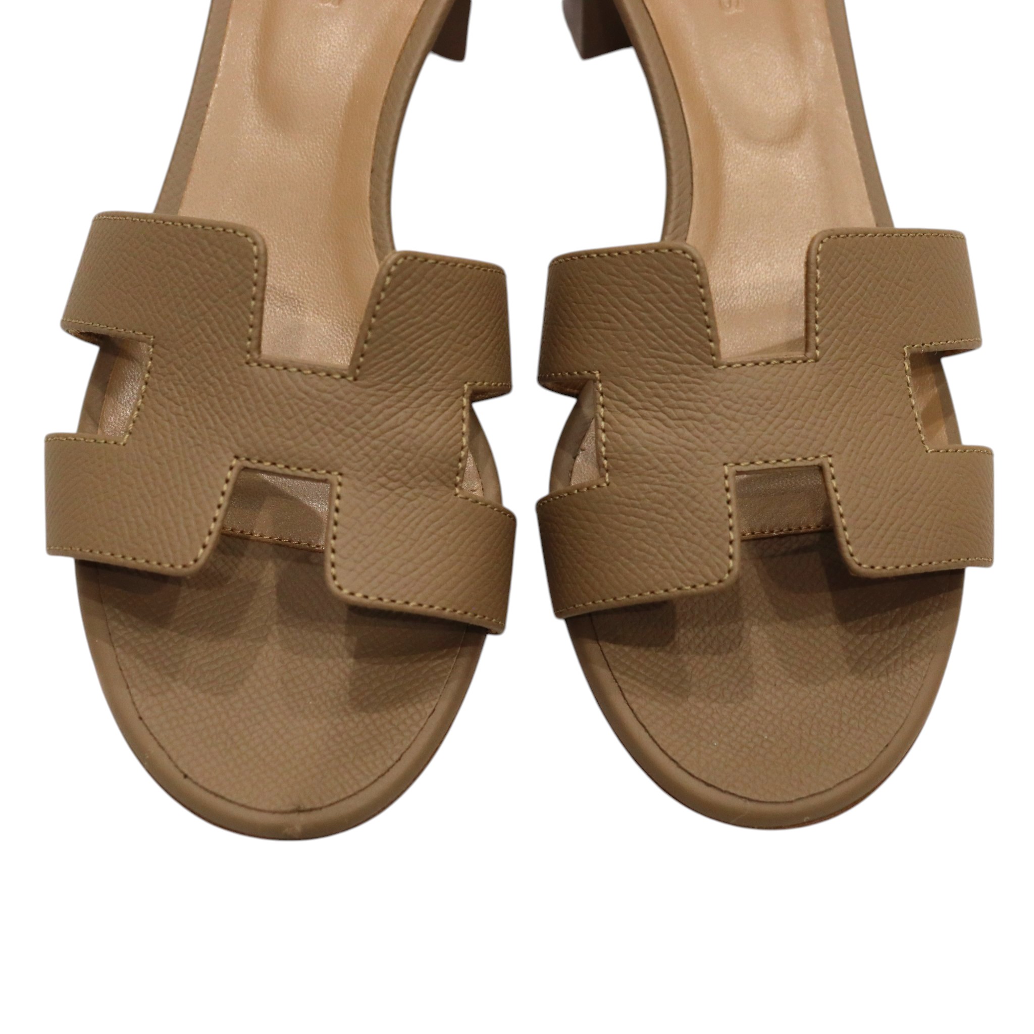 エルメスの象徴的な「H」のカットディティールが、エレガントな夏の装いを演出するヒールサンダルです。