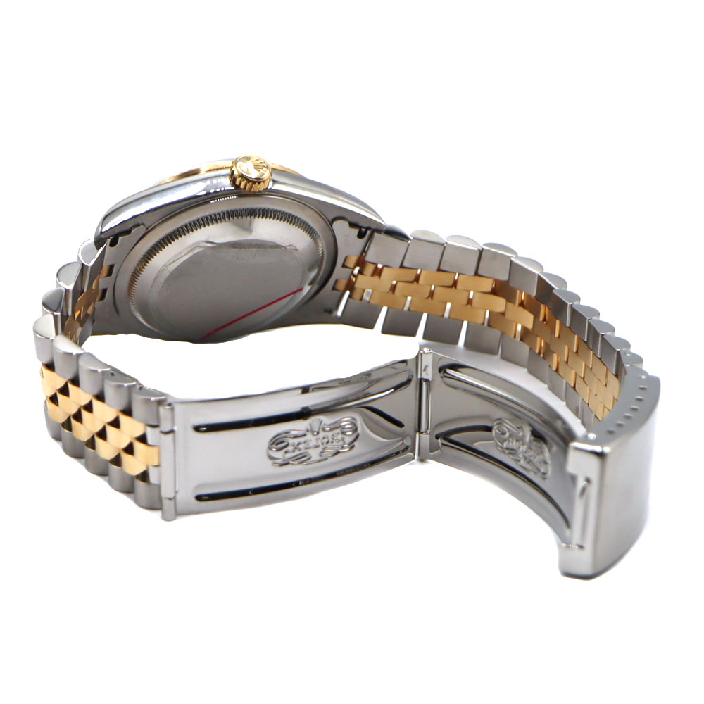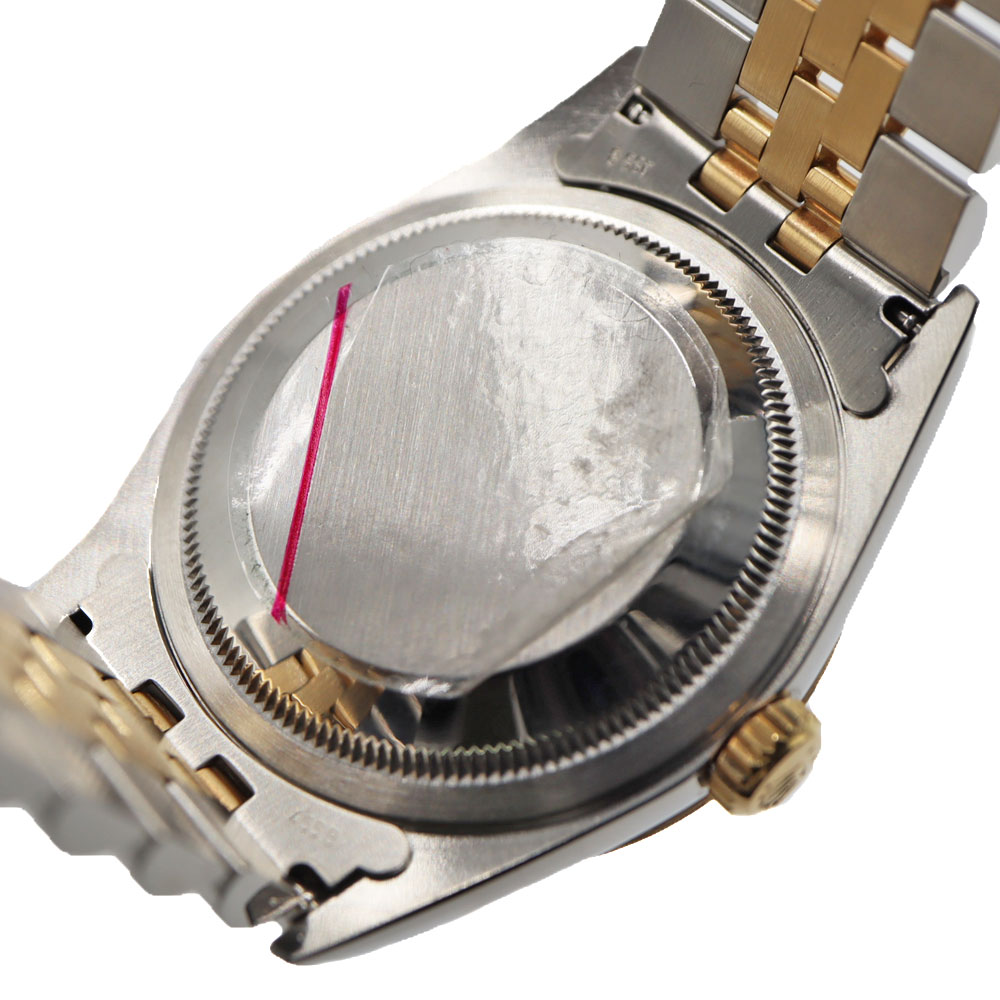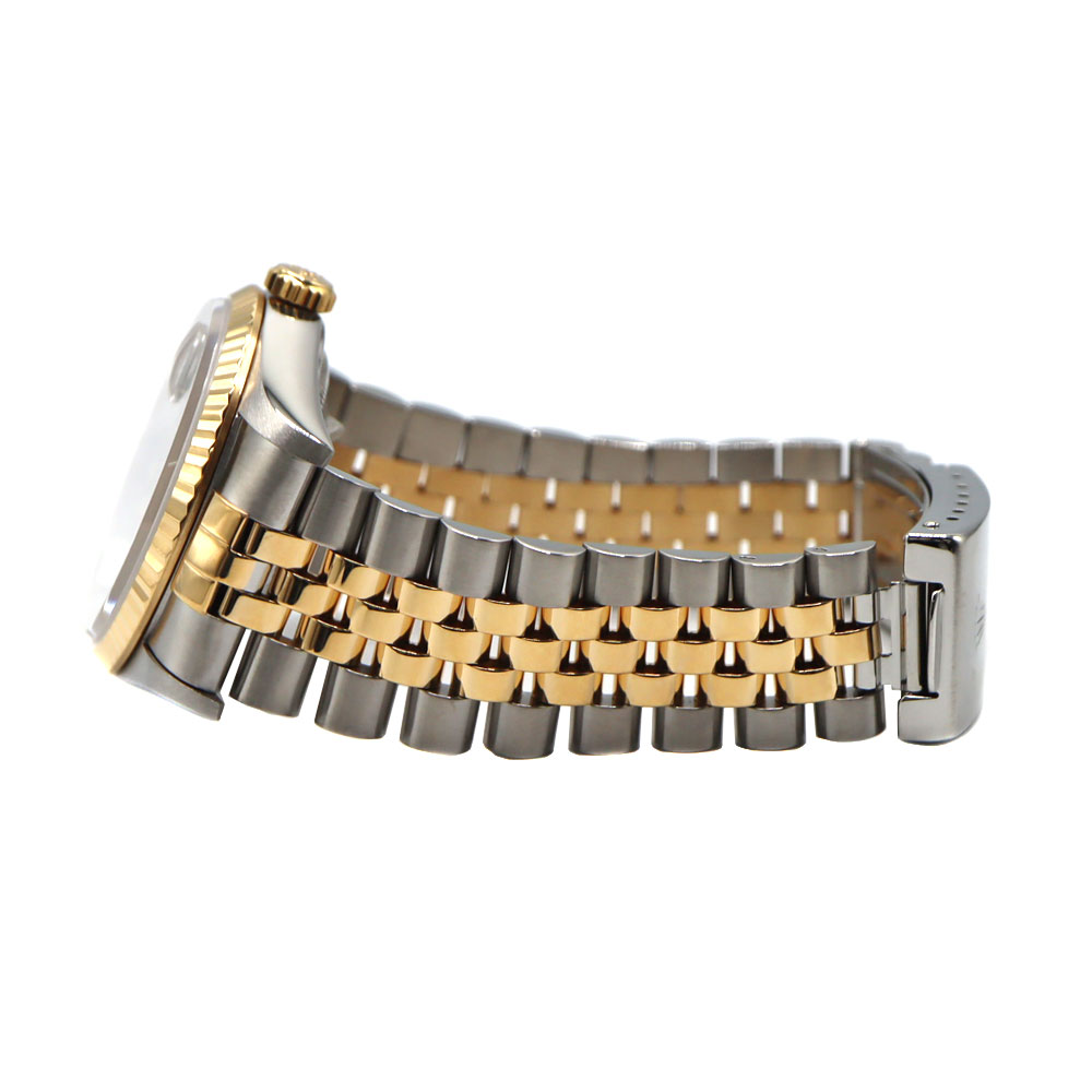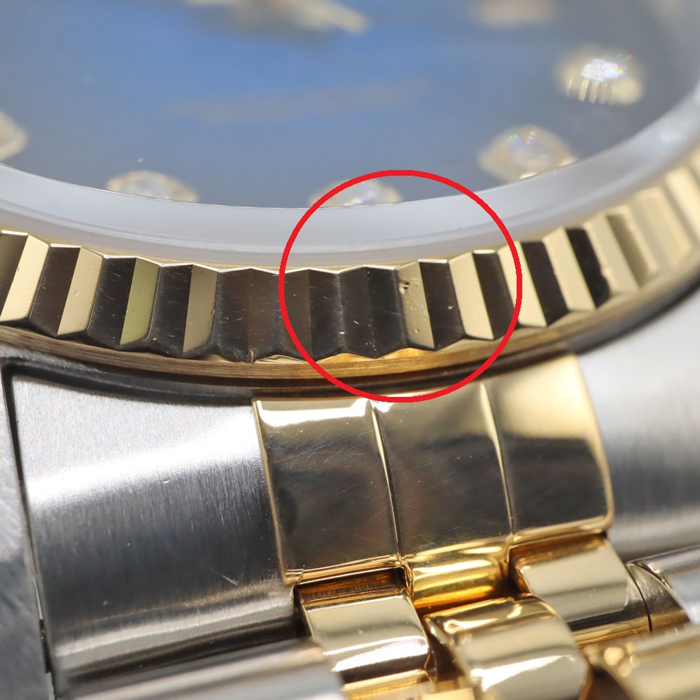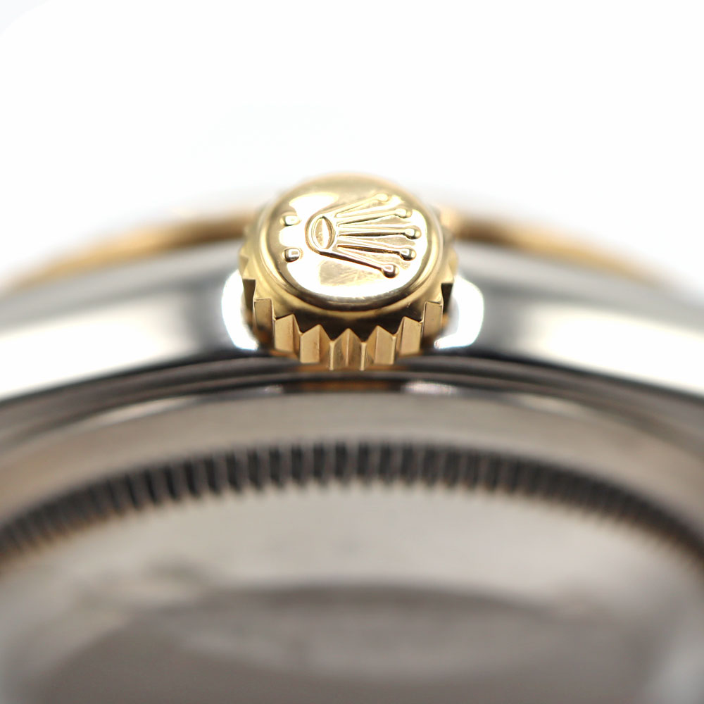 デイトジャストとは午前0時頃瞬時に日付が変わるデイトジャスト機構、全回転式ローターを搭載したパーペチュアル機構、ロレックス三大機構を搭載したモデルです。 珍しいブルーグラデーションの文字盤と10Pのダイヤがとても美しいモデルです。