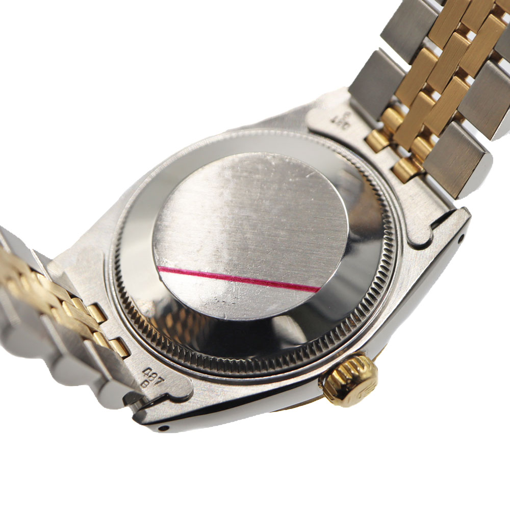 デイトジャストとは午前0時頃瞬時に日付が変わるデイトジャスト機構、全回転式ローターを搭載したパーペチュアル機構、ロレックス三大機構を搭載したモデルです。