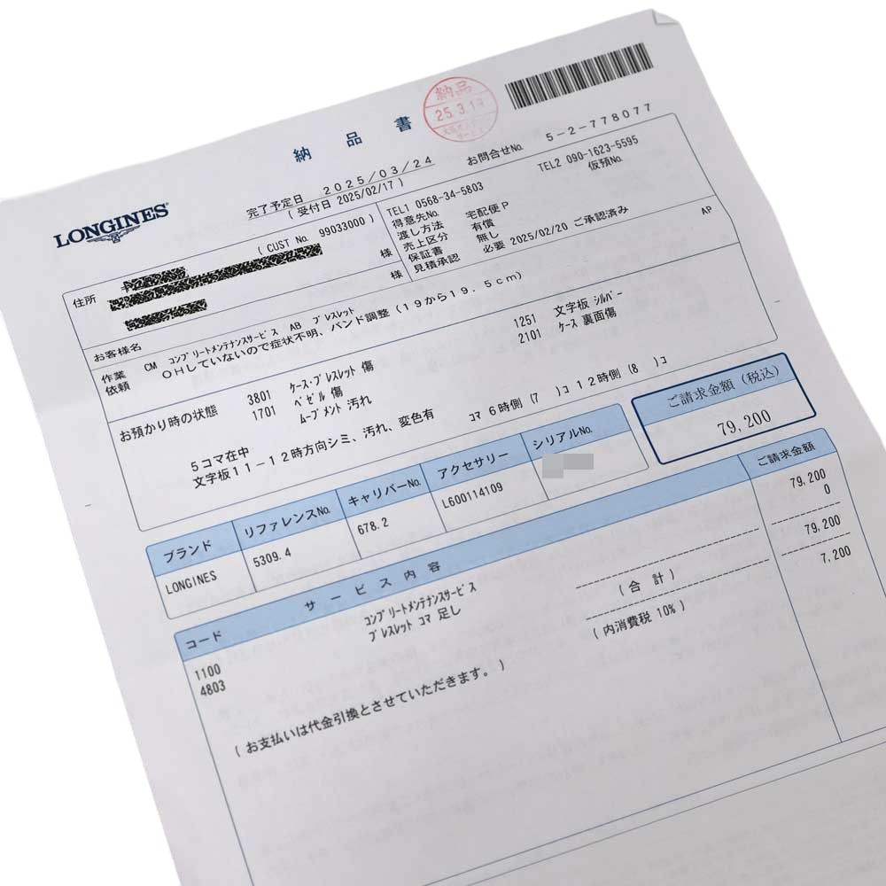 | 付属品 | 修理明細 修理用ケース |