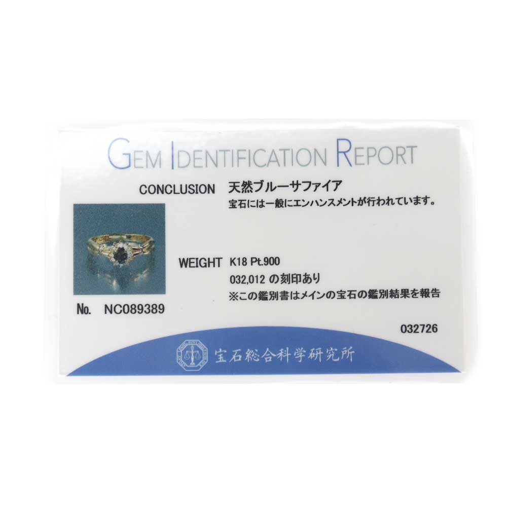 | 素材 | K18【18金】 Pt900【プラチナ900】 サファイア ダイヤモンド |