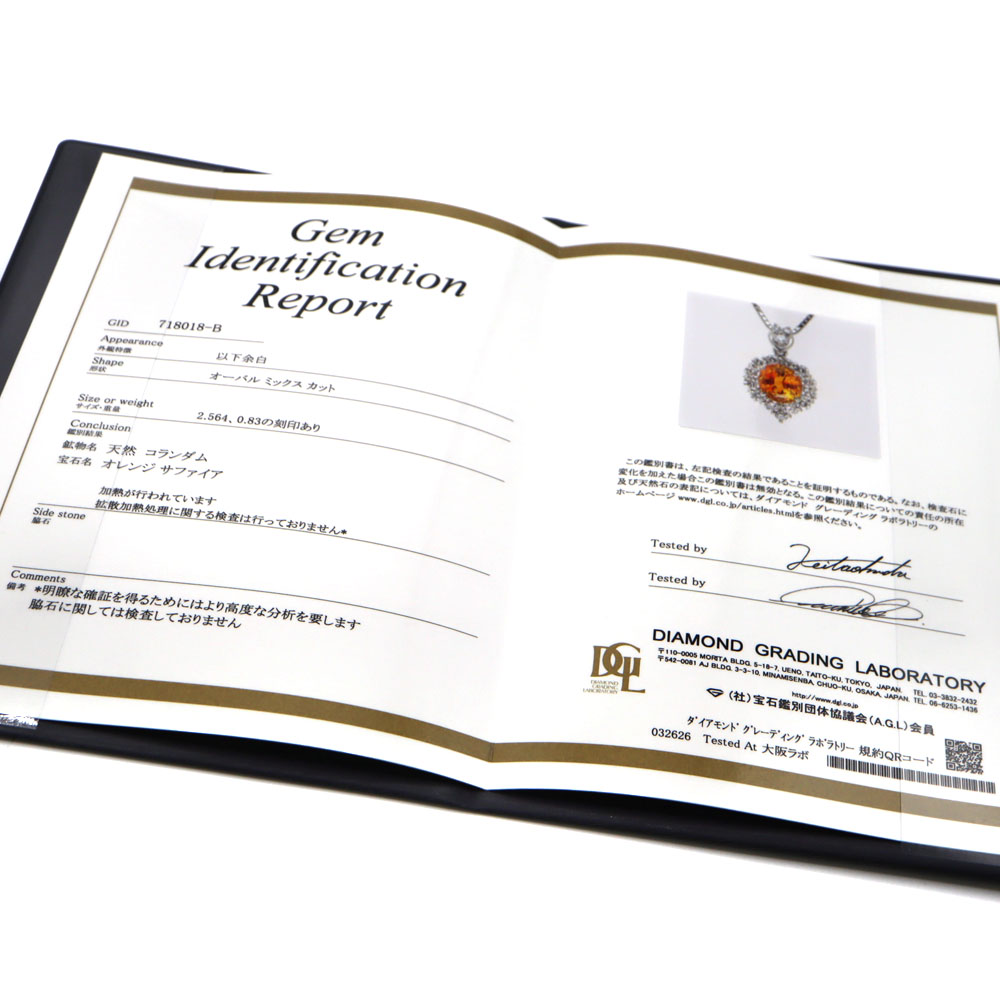 | 素材 | Pt850/トップPt900/オレンジサファイア2.564ct/D0.83ctダイヤモンド |