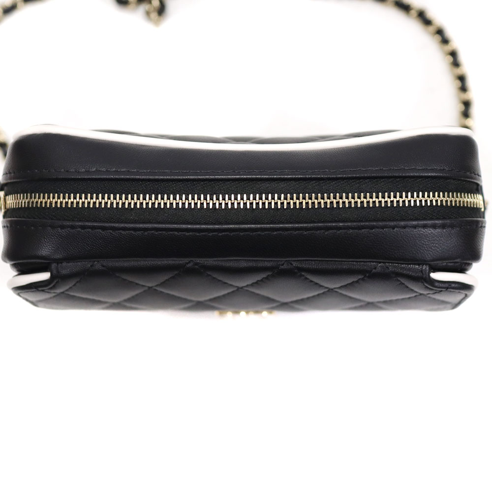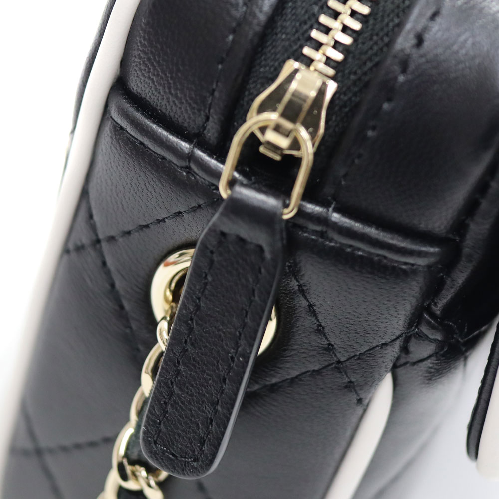 ブラックとホワイトのバイカラーがアクセントで特徴的なミニバッグです。