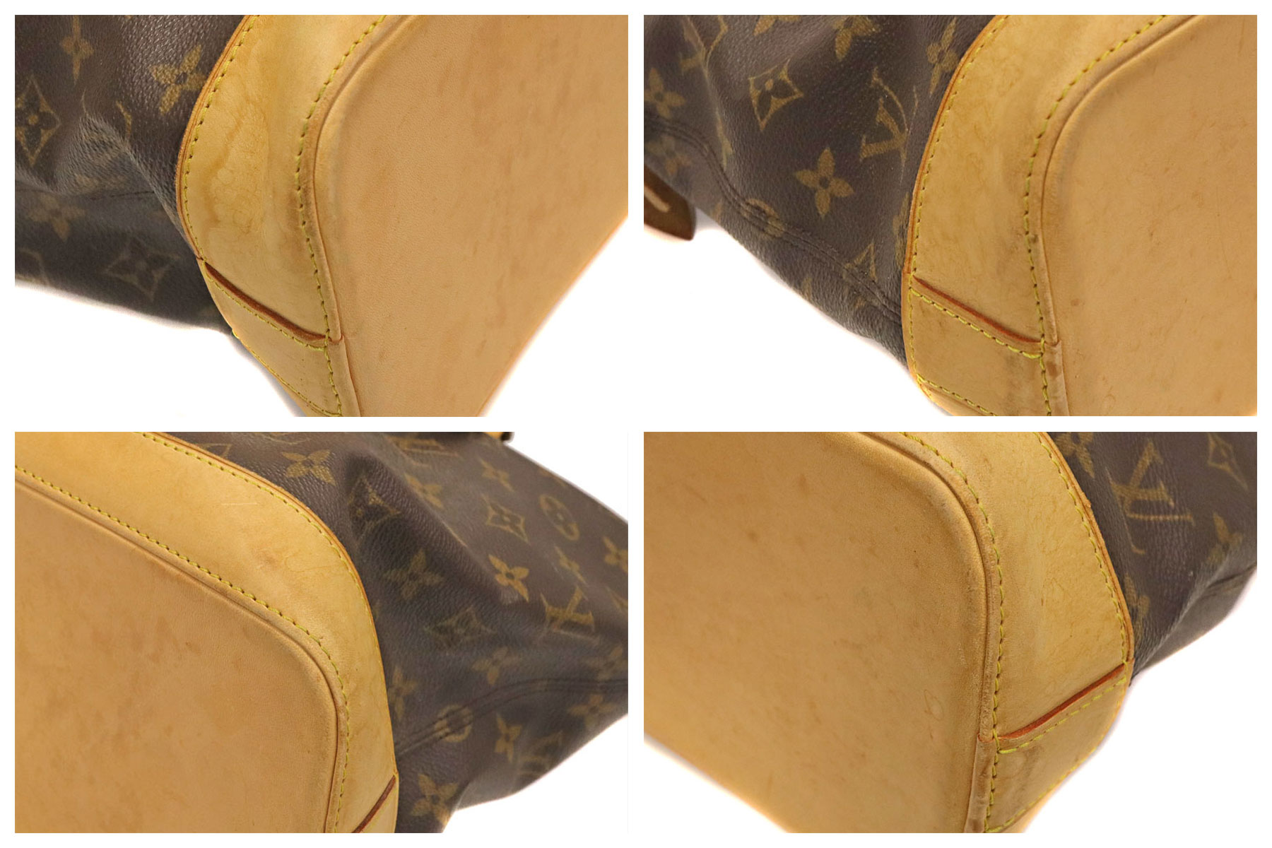 | 商品状態 | ■本体表面の擦れ、キズ ■本体底面のヌメ革のシミ、キズ ■持ち手部分ヌメ革のシミ、色あせ、コバ部分の毛羽立ち ■金具の擦れ、色剥げ ■内側に汚れ ■店頭でも販売しているため、画像にないキズ等がつく可能性がありますので予めご了承くださいませ。 |