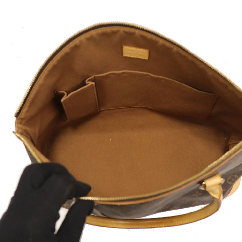 上質なモノグラムキャンバスとヌメ革が美しい、エレガントかつ実用的なハンドバッグです。 広めの開口とサイドまでしっかりと開くファスナーにより、荷物の出し入れがスムーズ。日常使いに適した高い収納力を誇ります。 丸みを帯びたフォルムとハンドルの立ち上がりが上品な印象を与え、ビジネスシーンでも活躍できるアイテムです。