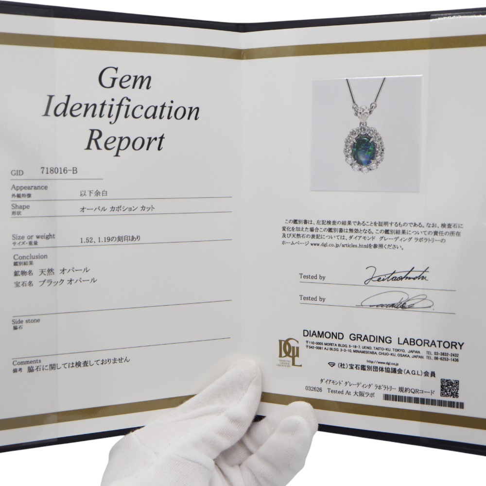 | 素材 | Pt900(プラチナ900) ブラックオパール:1.52ct ダイヤモンド:1.19ct |