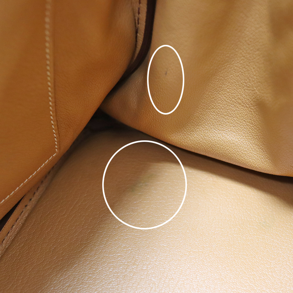 | 商品状態 | ■型崩れ ■ハンドル部分に薄キズ ■金具の小傷、スレ ■角のスレ、黒ずみ ■外側底面と側面一部スレ、キズ ■内側一部汚れ ■店頭でも販売致しますので、画像にない汚れ等付く可能性がありますので予めご了承くださいませ。 |